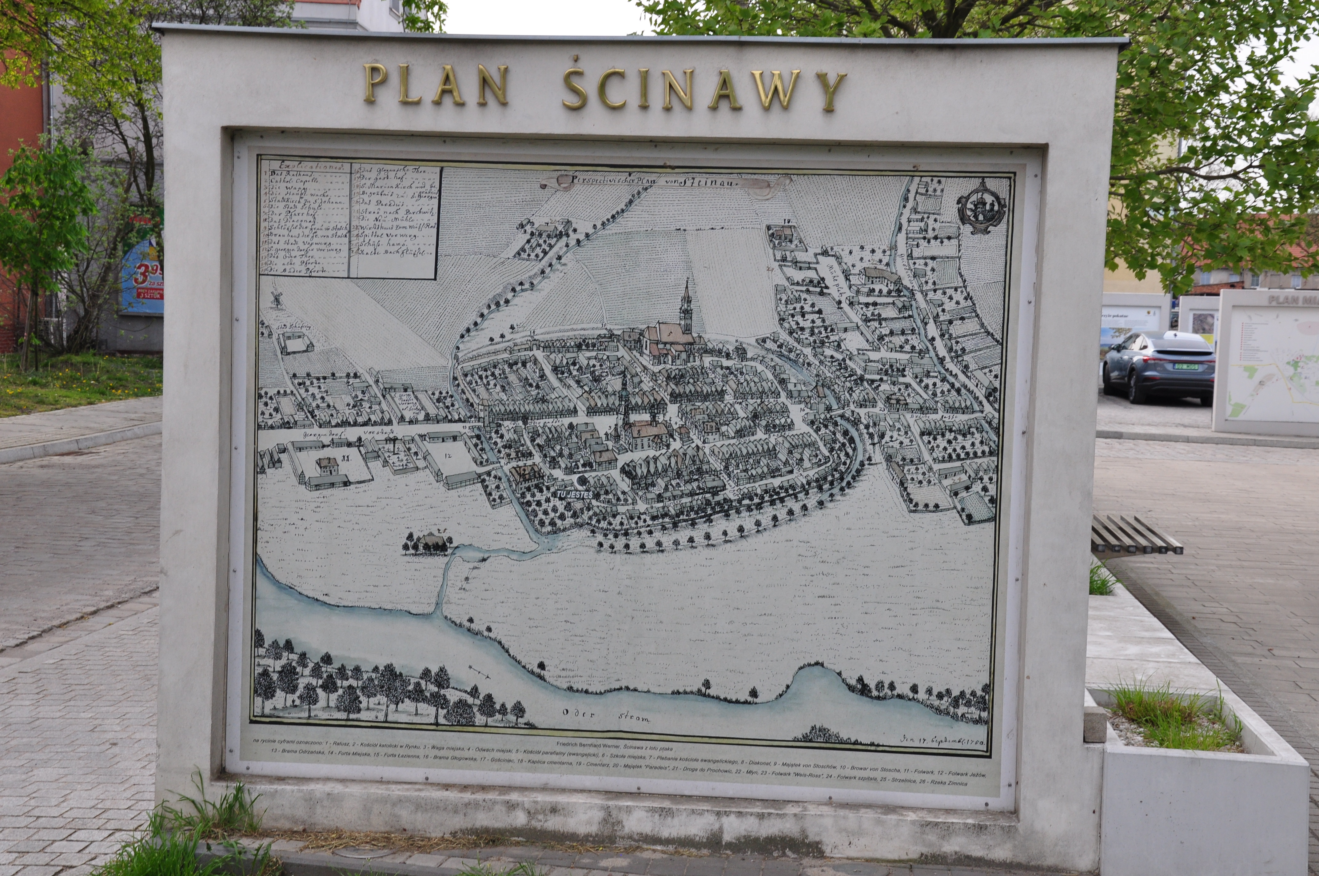 Pierwsza wzmianka o grodzie datowana jest na 1202 rok. Mowa jest tam o wsi będącej we władaniu klasztoru w Trzebnicy. Prawa miejskie Ścinawa otrzymała między rokiem 1248 a 1259 od księcia głogowskiego Konrada I. Pierwotnie otoczone było wałem ziemno-drewnianym. Mury miejskie wzniesiono w końcu XIII wieku. W 1343 roku Kazimierz Wielki w bitwie z Luksemburgami o Wschowę zdobył Ścinawę a następnie nakazał jej spalenie i zburzenie murów. Zostały gruntownie odbudowane po walkach z Kazimierzem Wielkim w XIV wieku. Posiadały dwie bramy: Odrzańską i Głogowską, powiększone w XV w. o dwie furty: Starą i Łazienną. Rozebrane zostały na materiał budowlany w XIX wieku. Obecnie zachowały się w niewielkich fragmentach w zachodniej części miasta jako wzniesione z cegły na podmurówce kamiennej. W części południowej są to odcinki częściowo rekonstruowane w ostatnich latach, natomiast w zachodniej zachowane są fundamenty murów, nie zabezpieczone, na których wybudowane zostały szopy i komórki. Ukształtowanie terenu pozwala również na prawdopodobne ustalenie przebiegu murów obronnych w części północno-zachodniej. W układzie terenu czytelny jest również przebieg wału po zewnętrznej stronie fosy miejskiej, po którym poprowadzono w XIX w. promenadę. (źródło w części: http://scinawa.com.pl)