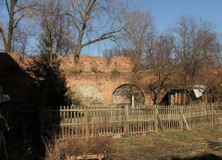 17. Następnie, obok DPS-u dochodzimy do zamku. Tam są jeszcze dwa fragmenty muru, który nie wiem czy jest murem przedzamcza, czy murem łączącym miasto z zamkiem, czy czymś zupełnie innym.