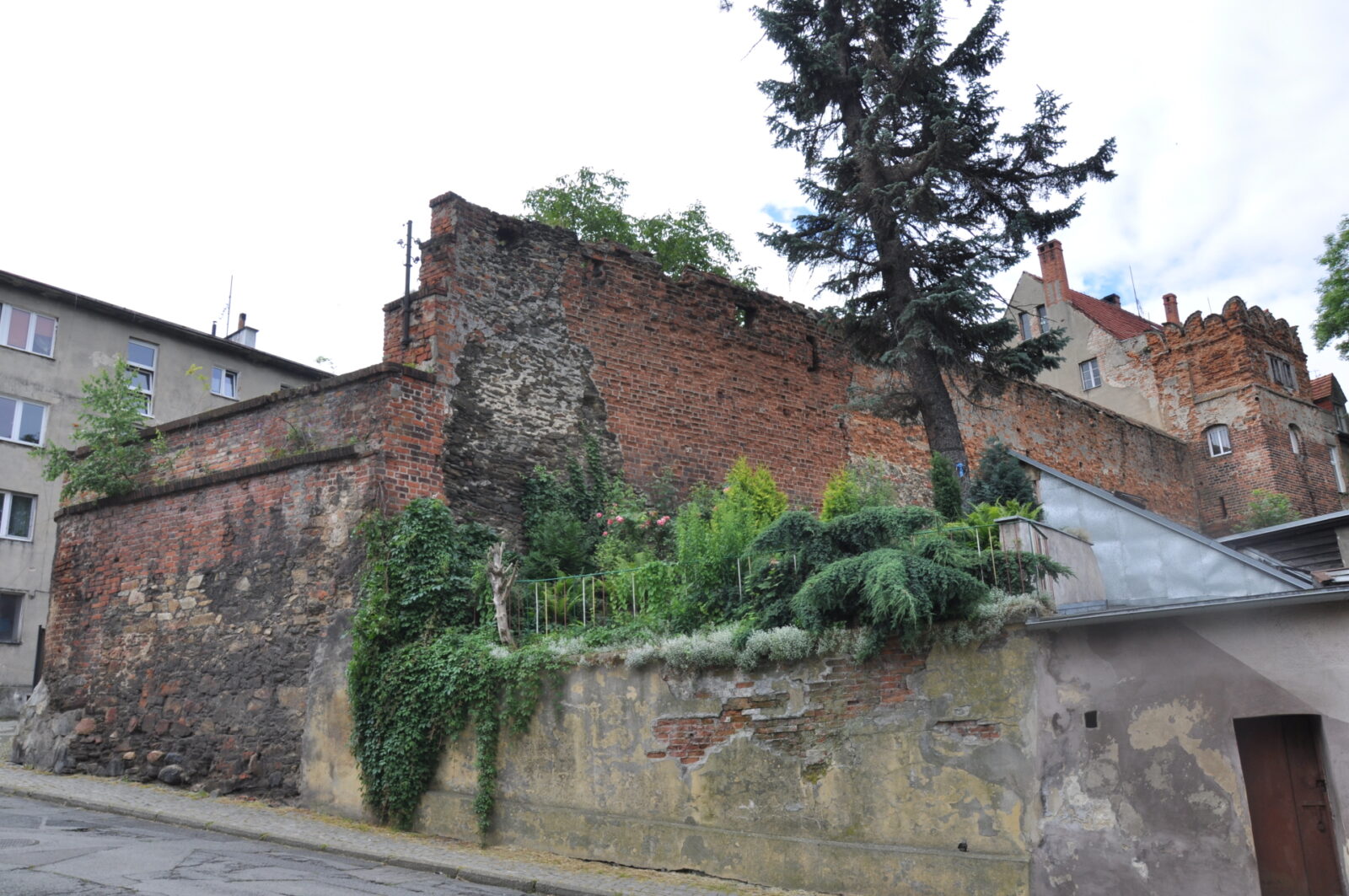 1. Zaczynamy przy ul. Krzywej (niedaleko zamku). Tu mamy pierwszy, kilkudziesięciometrowy fragment muru
