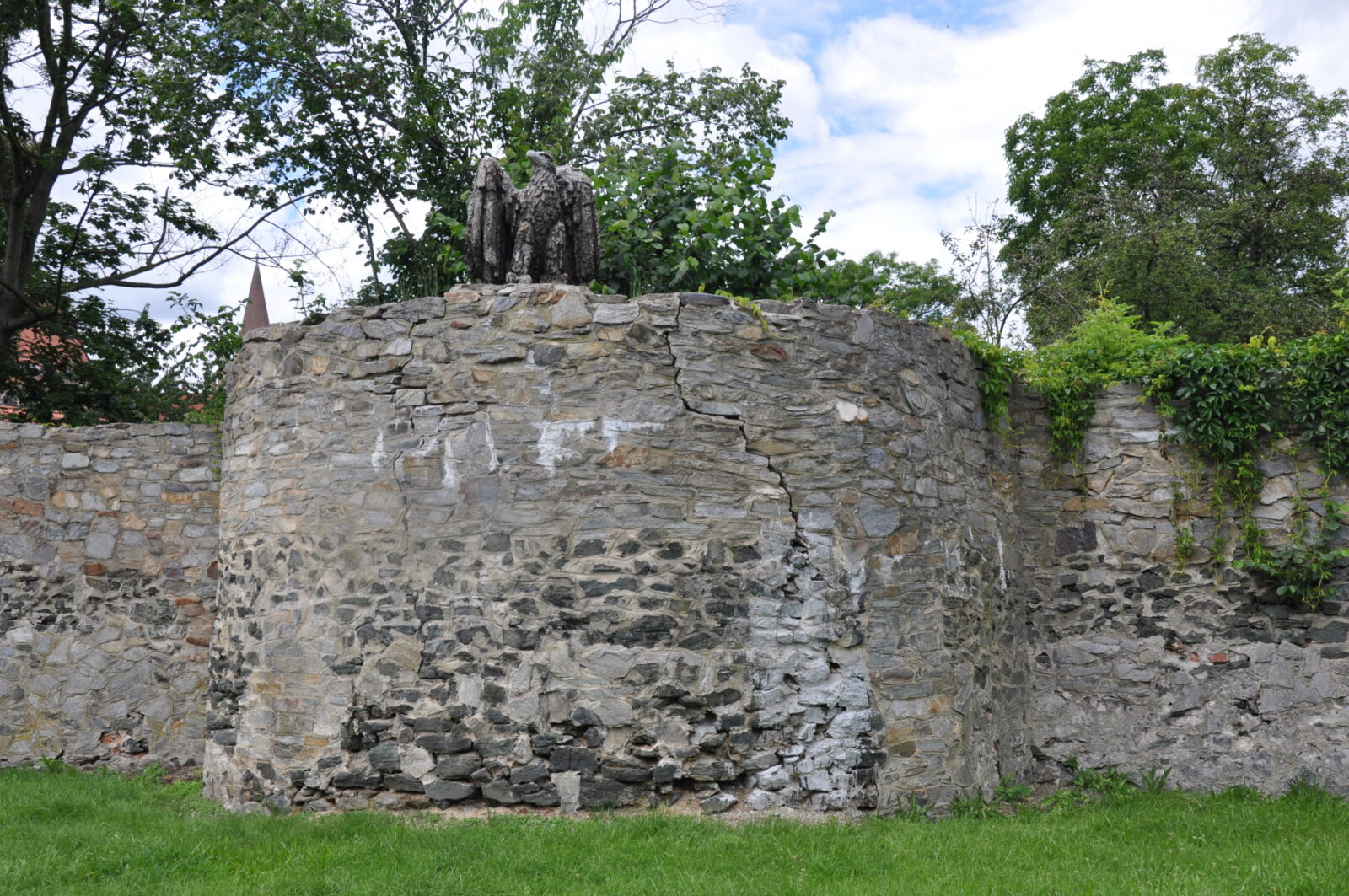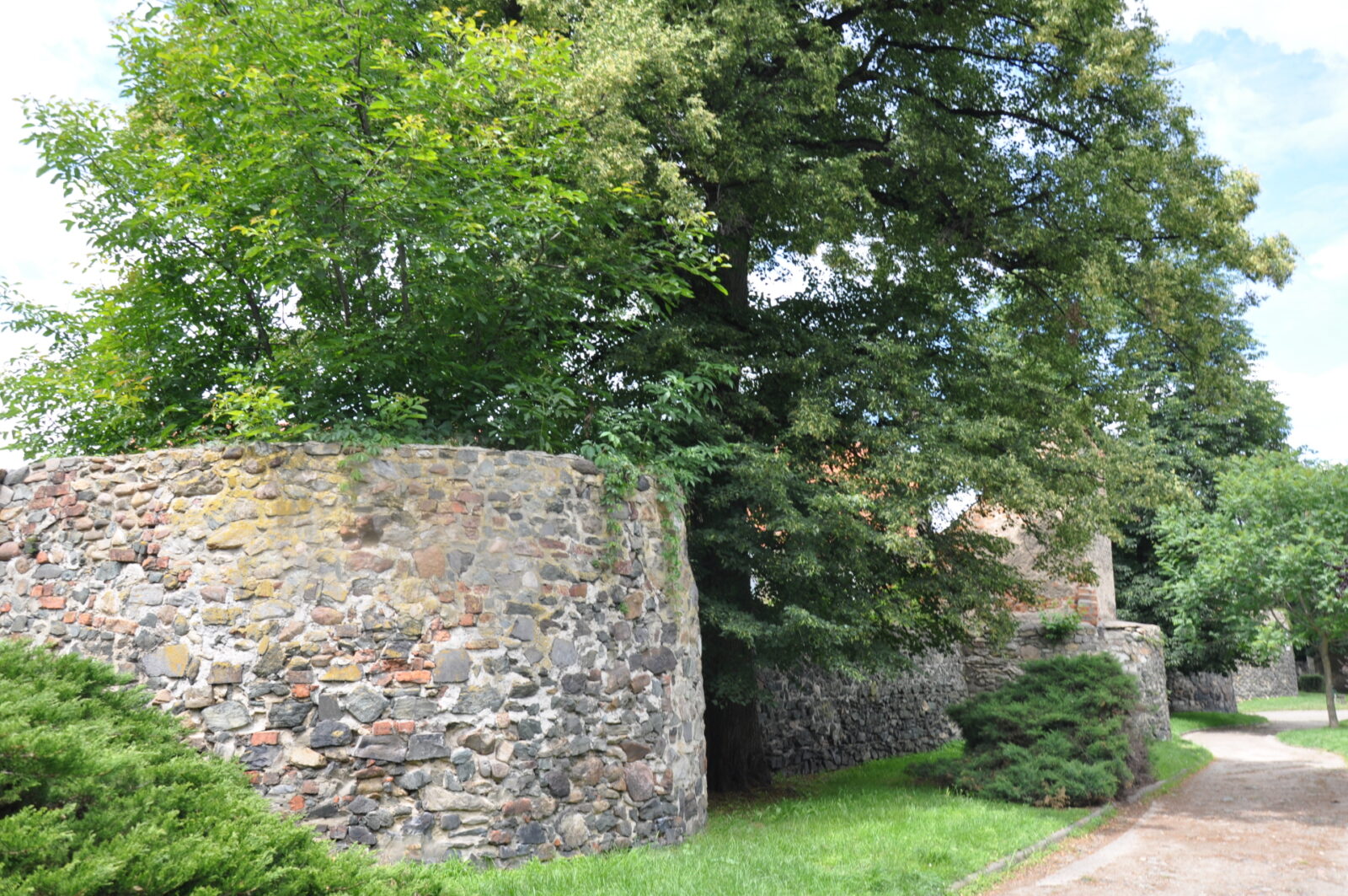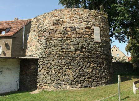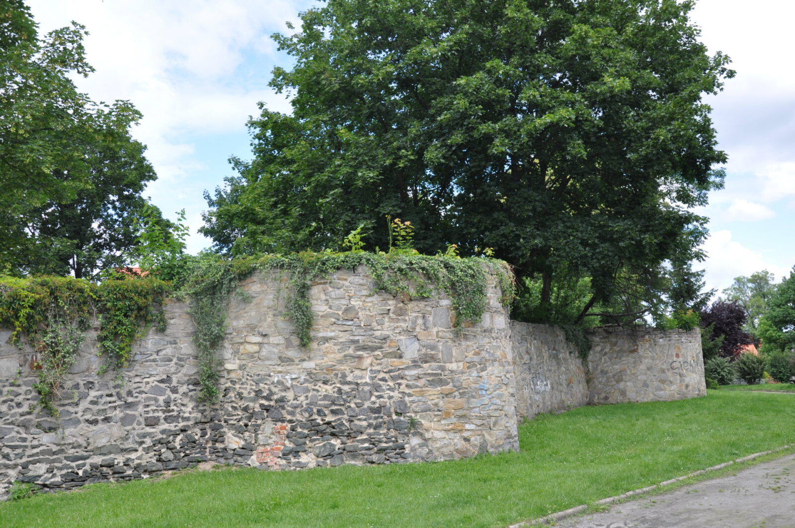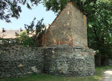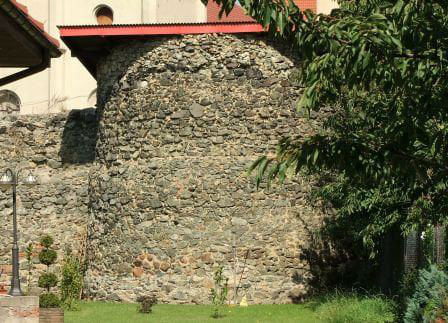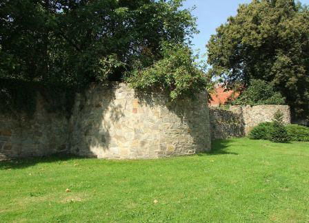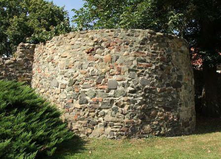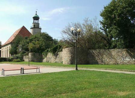 1. Zaczynamy przy kościele ewangelickim. Spory odcinek muru z kilkoma półbasztami.