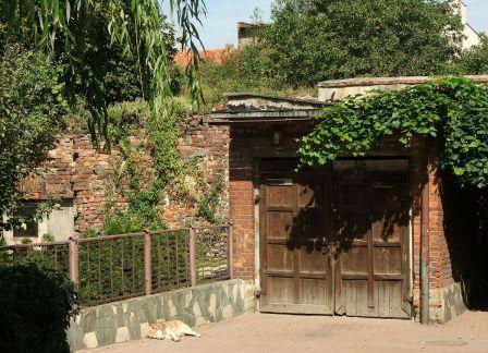 11. Za bramą kolejny spory kawał muru, w większości na terenie prywatnym. Na tym odcinku widziałem kolejne dwie półbaszty (fot. 2 i 4), ale nie wykluczam, że może ich tam być więcej. Wszystko zasłaniają domy.