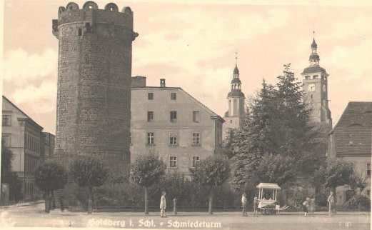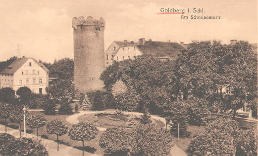 Prawa miejskie osadzie nadał w roku 1211 książę Henryk I Brodaty (stało się to na zamku w sąsiedniej Rokitnicy), osadzając tu niemieckich kolonistów. Jest to najstarsza udokumentowana lokacja na ziemiach polskich, co pod względem prawnym czyni Złotoryję najstarszym miastem Polski. Mury miejskie zaczęto wznosić w XIV wieku. Początkowo posiadały dwie bramy: dolną i górną - Kowalską, nieco później przebito furty Wilczą i Solną. W początkach XV wieku wzniesiono zewnętrzny pierścień murów oraz wzmocniono baszty i bramy. Niszczejące fortyfikacje poczęto rozbierać od 1822 roku. Obecnie między innymi fragmentami we wschodniej stronie miasta, konserwowanymi w latach 1957-1964, zachowała się baszta Kowalska, zwieńczona w XVI w. krenelażem, kolista, z blankami nadwieszonymi na kroksztynach.