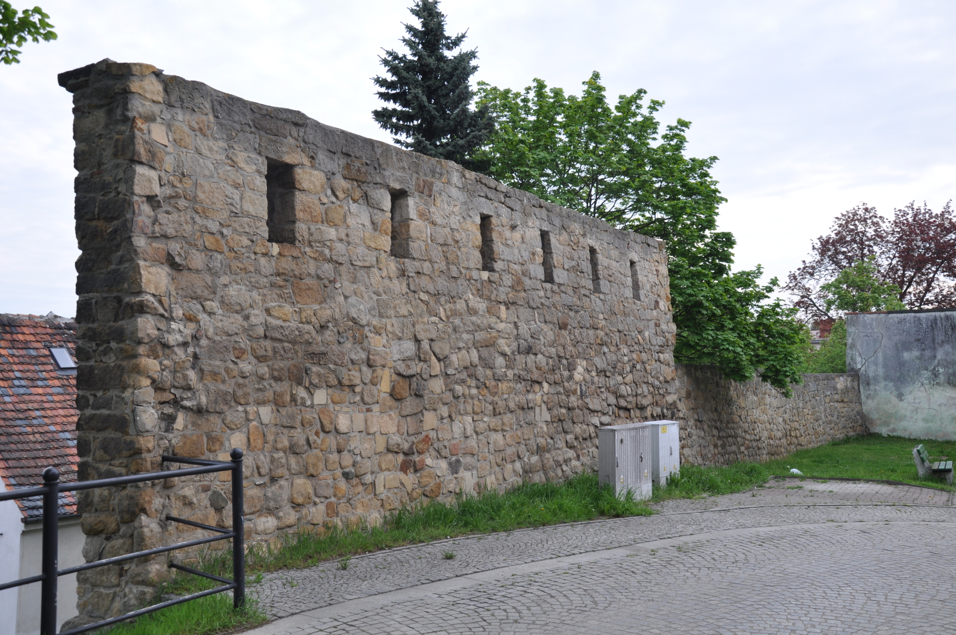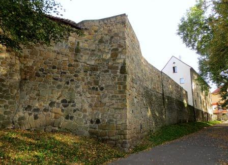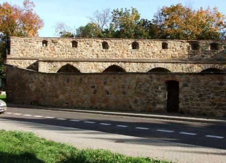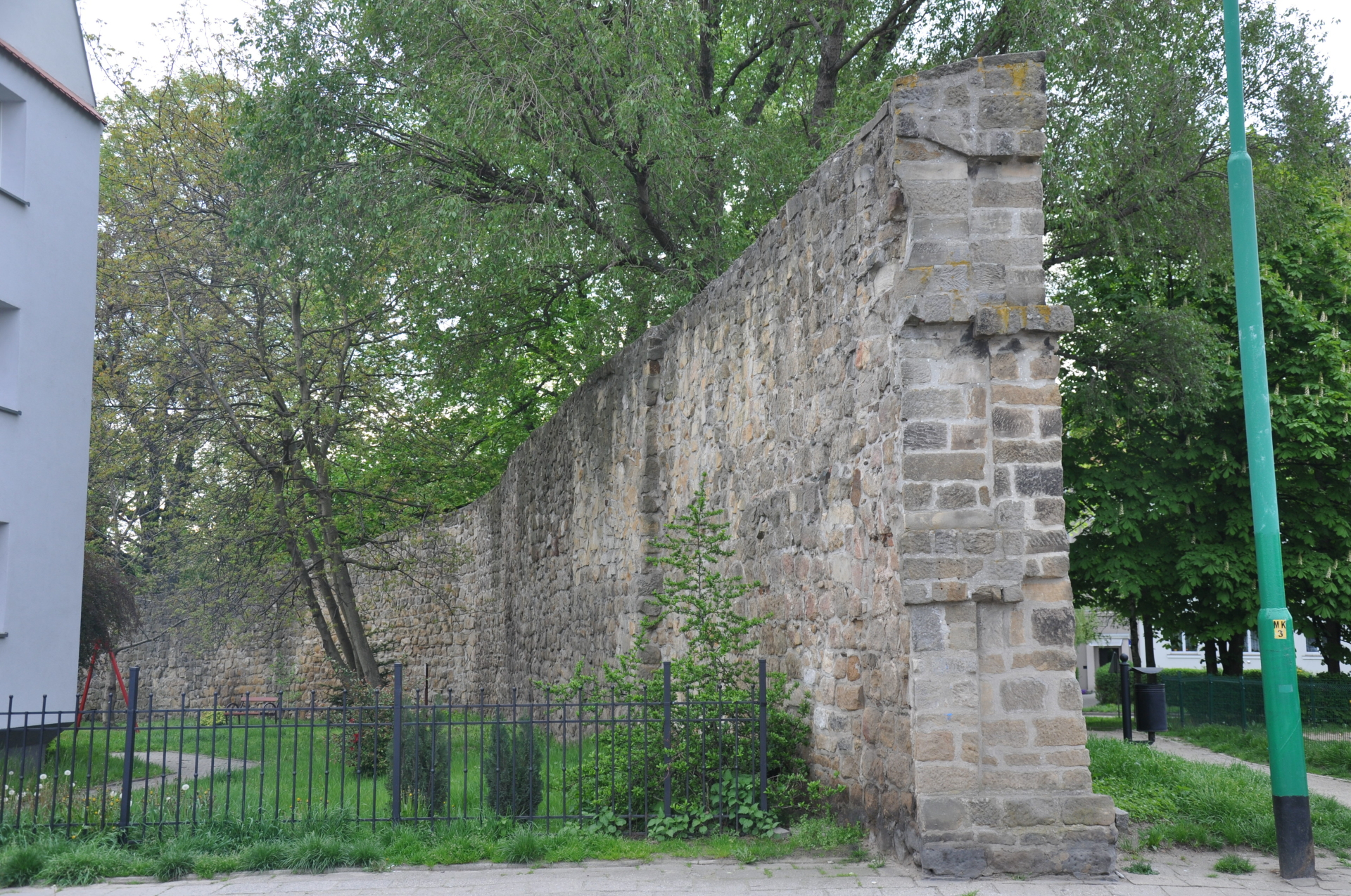 Odcinek wschodni z zachowanym sporym ciągiem murów i 2 basztami (wzdłuż ul. Staszica)