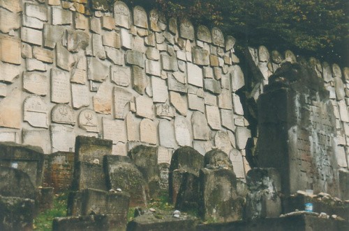 Z którego została jedynie sciana z macewami, oraz kilka pojedyńczych nagrobków w lesie
