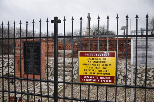 Miejsce spoczynku szczątków upamiętniono pomnikiem z inskrypcją o treści: Tu spoczywają szczątki 478 ofiar zarazy cholerycznej z lat 1872-1873 zebrane pod wspólną mogiłą po zniszczeniu cmentarza cholerycznego podczas budowy węzła kolejowego w 1908 r.