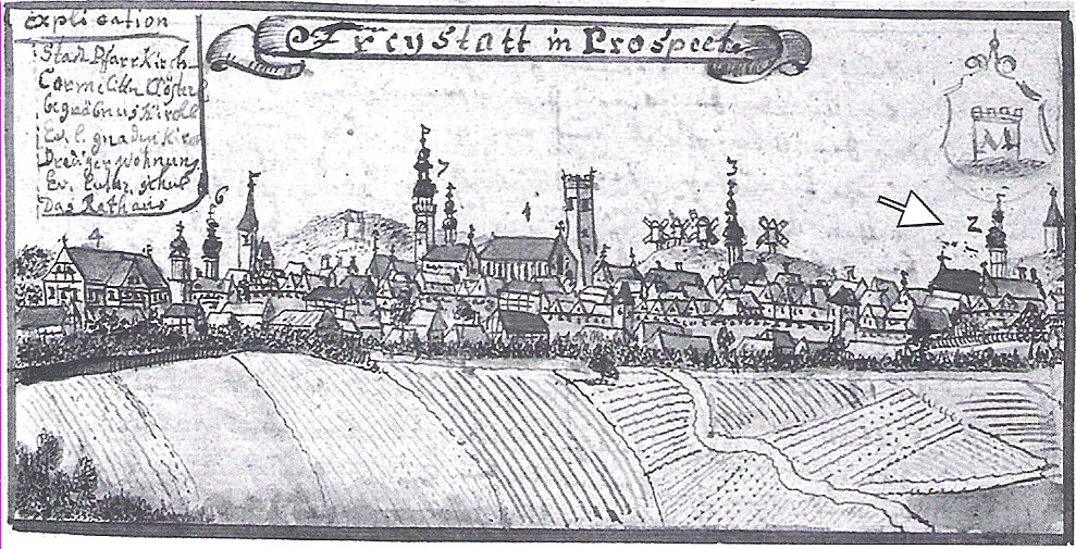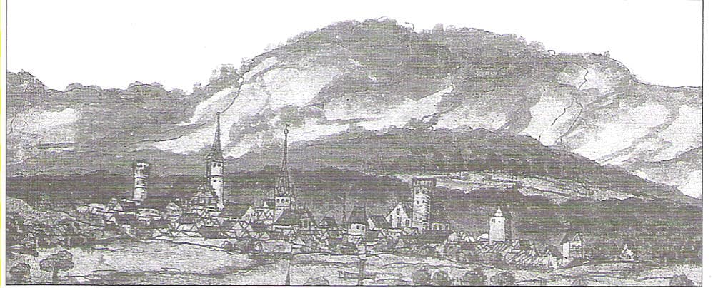 panorama miasta na rysunku F.B.Wernera z połowy XVIII wieku