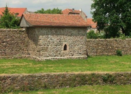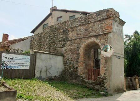 3. Tam też długi odcinek podwójnych murów z dwiema basztami wtopionymi w późniejszą zabudowę. Widoczne półokrągłe basteje.