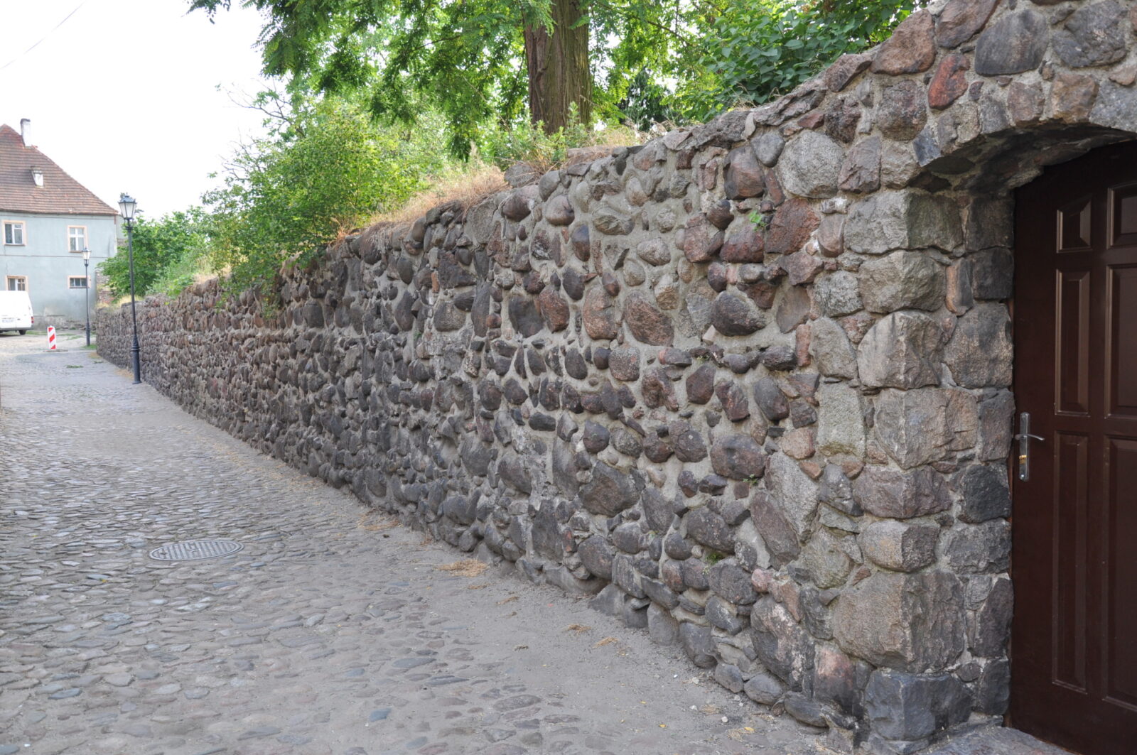 12. wracając do punktu wyjścia przy ul. Mickiewicza kolejny odcinek muru z reliktem baszty.