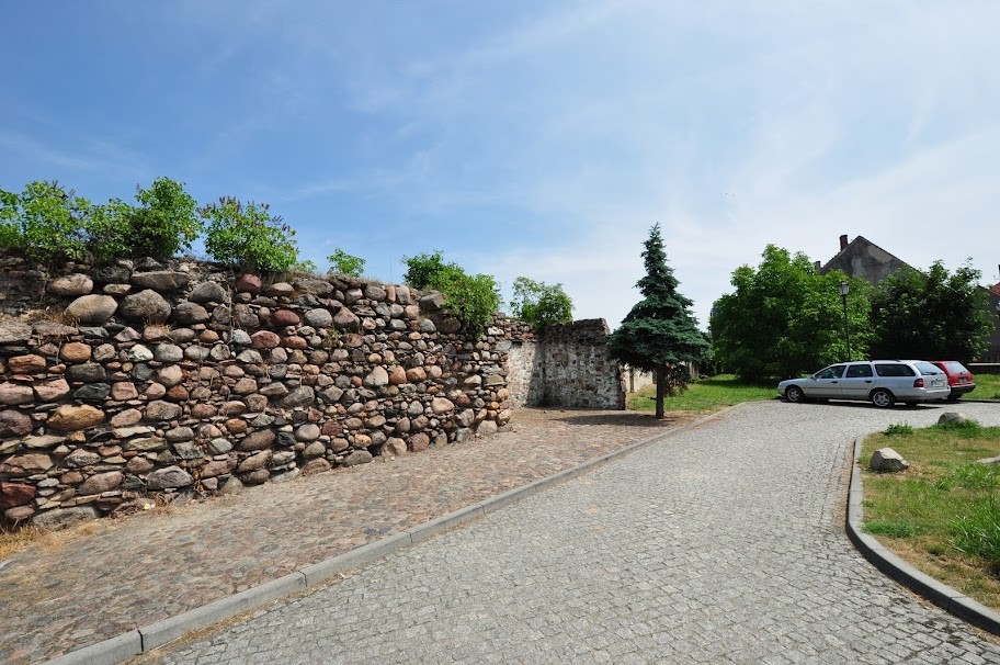 1. Zaczynamy przy zamku, do którego dochodzi taki oto fragment muru.