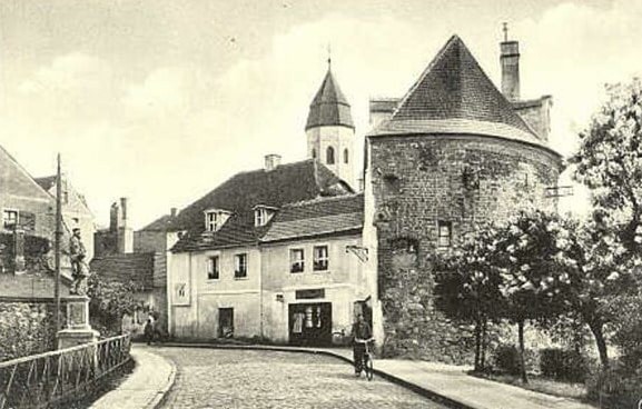 Brama Głogowska od strony przedmieścia na rysunku A.Schucke, koniec XVIII wieku