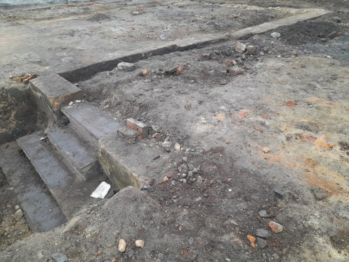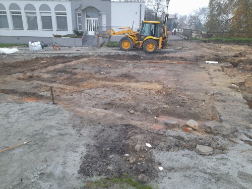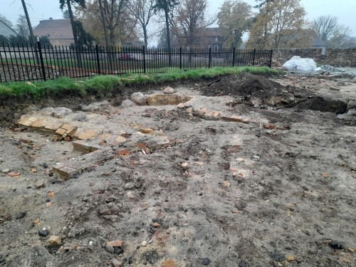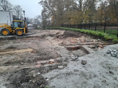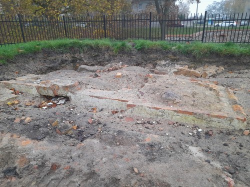 Odkryty relikt Baszty Prochowej. Miejsce ma być ponownie zasłonięte (może już jest) i będzie tutaj parking. Foto listopad 2022.