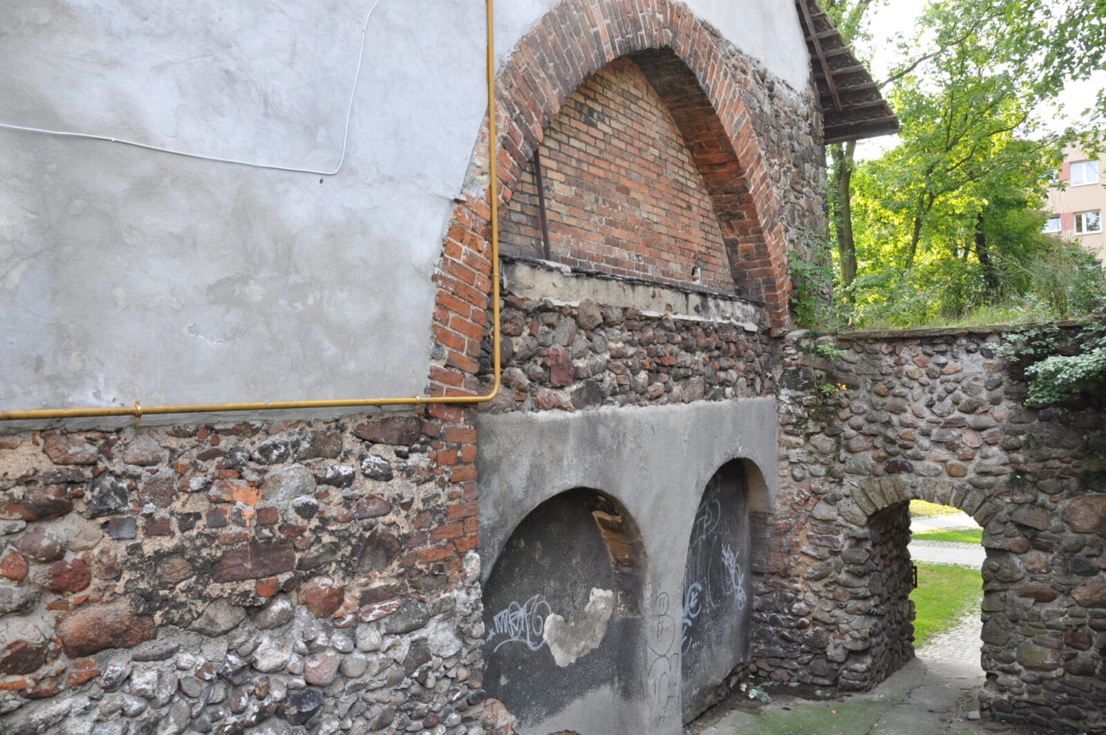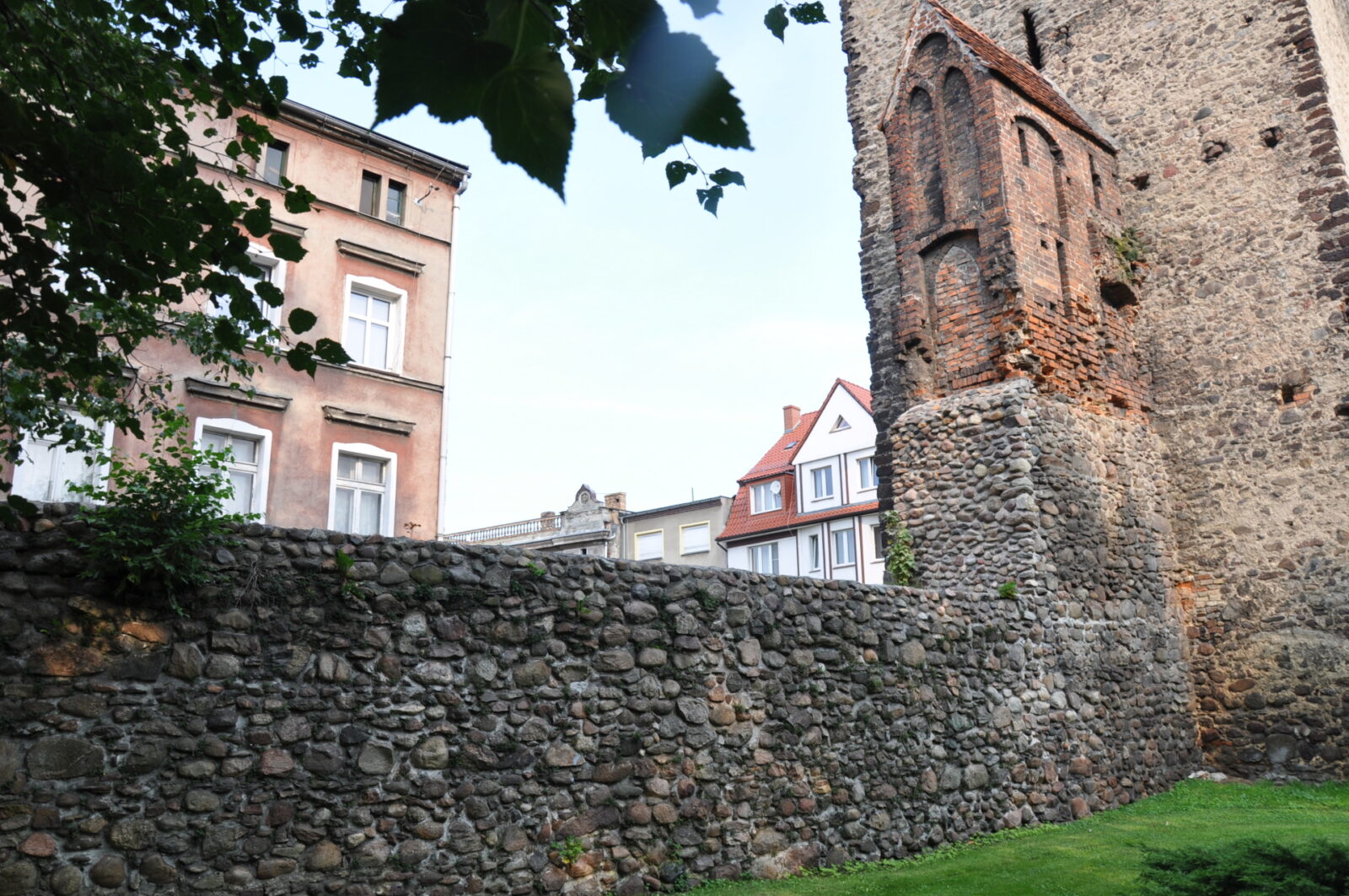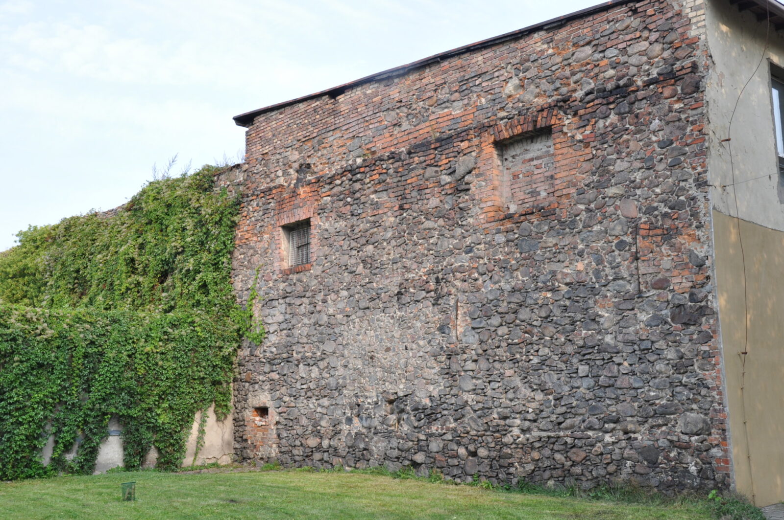 Kawałek muru pozostał się przy pałacu Promnitzów (zdjęcie z lipca 2013):