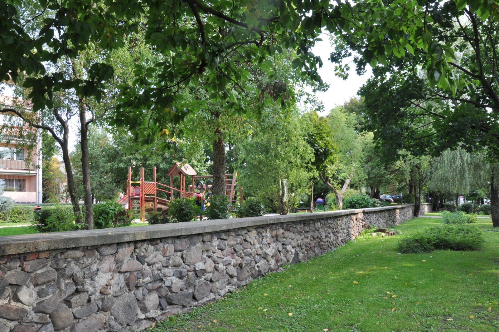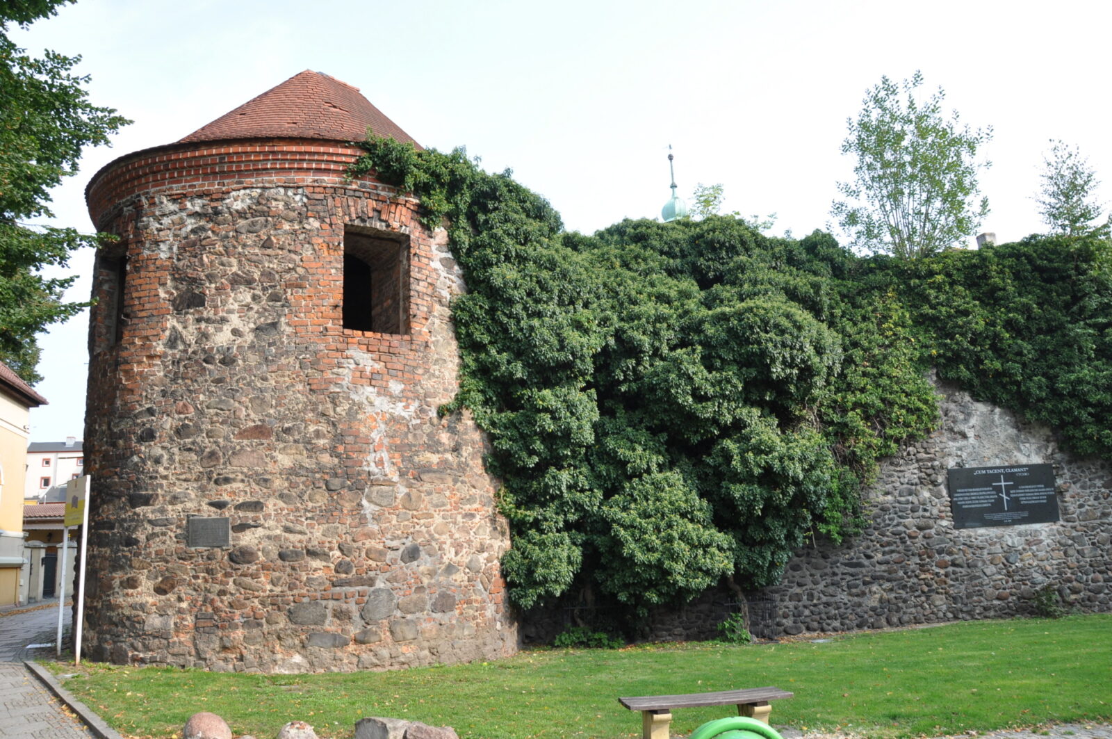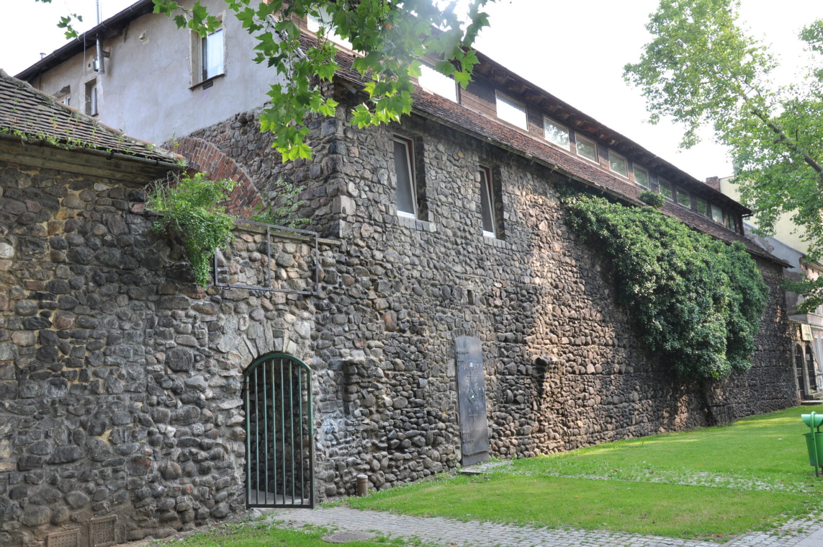 Kawałek muru pozostał się przy pałacu Promnitzów (zdjęcie z lipca 2013):
