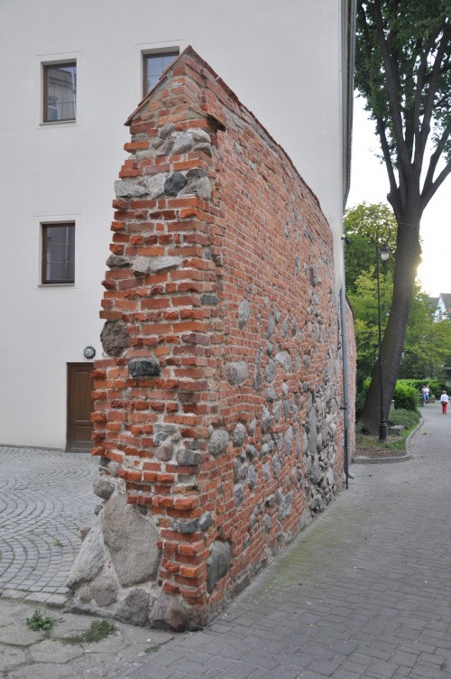Skąd wiadomo, że to baszta? - Widać zaokrąglenie muru, na wiek wskazuje też jego struktura, to jest cegła gotycka - pokazuje archeolog.