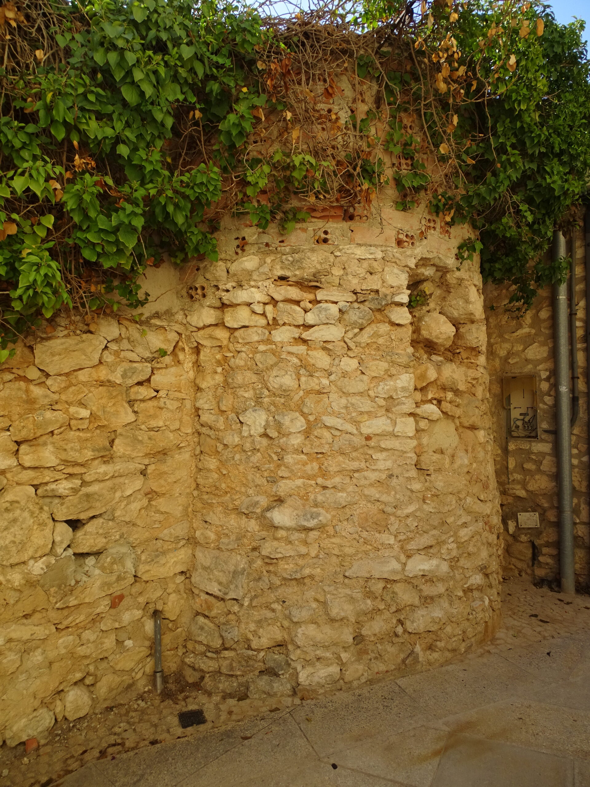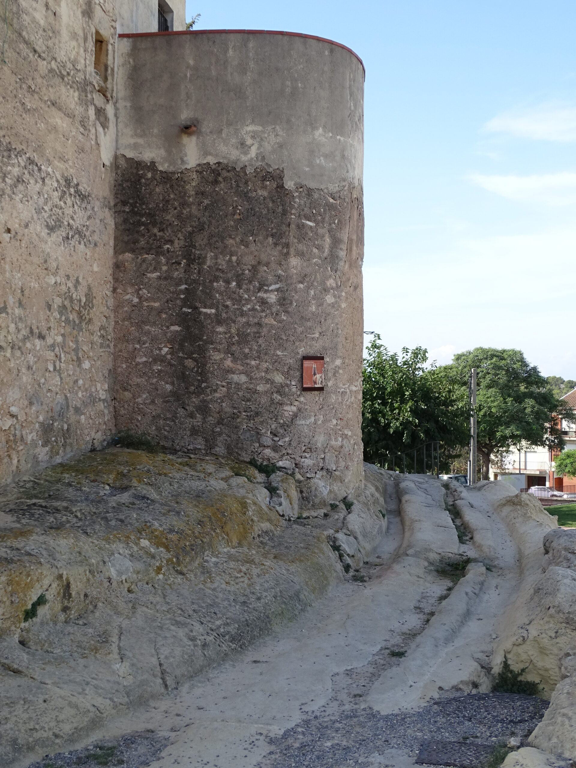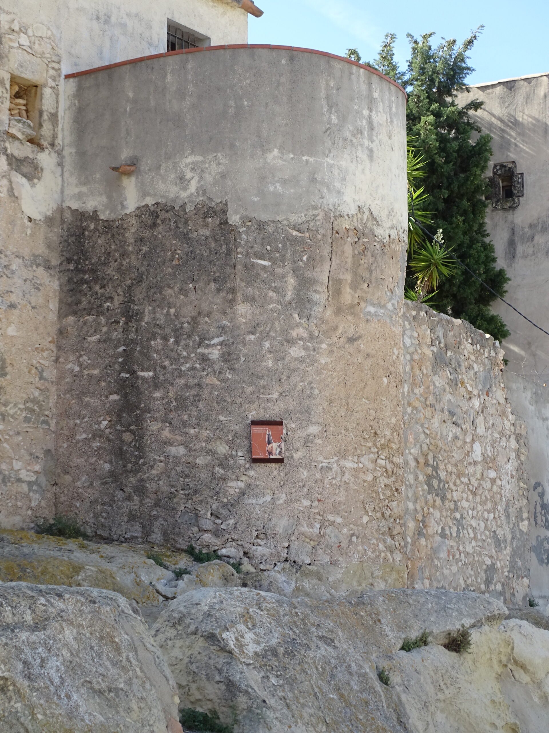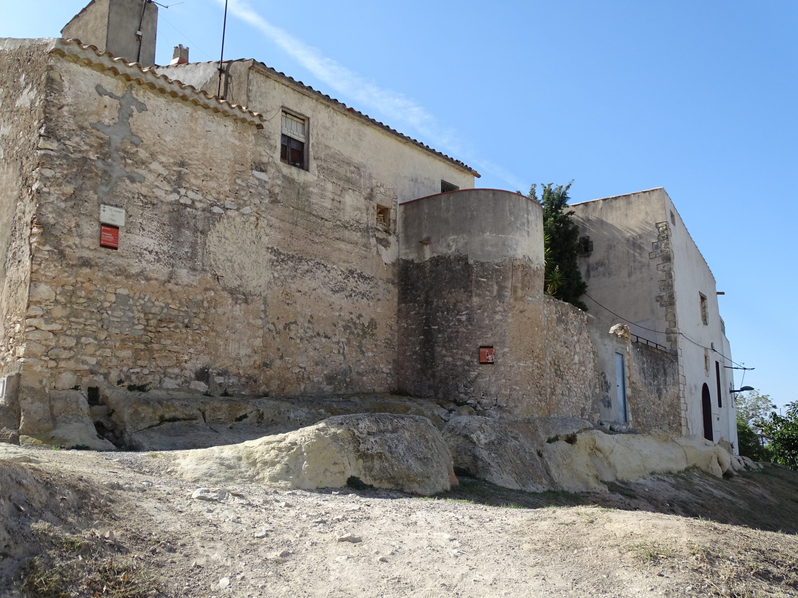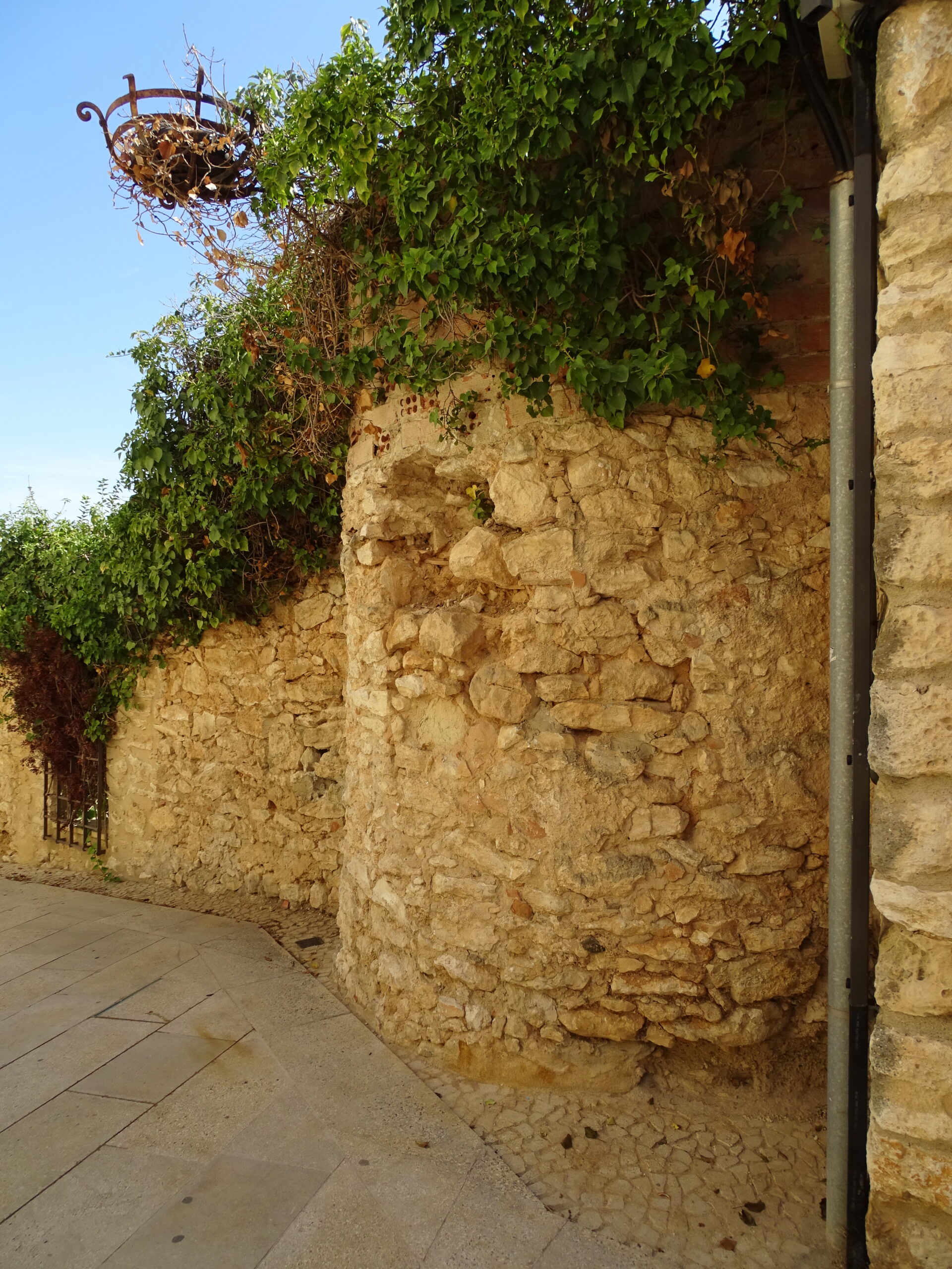 Ze średniowiecznych obwarowań Calafell z XIV w. zachowały sie tylko 3 okrągłe baszty w najbliższym sąsiedztwie zamku (zamek w Calafell opisałem tutaj ) oraz prawdopodobnie 4-ta, obudowana całkowicie domami (jej zarys jest widoczny tylko z góry).