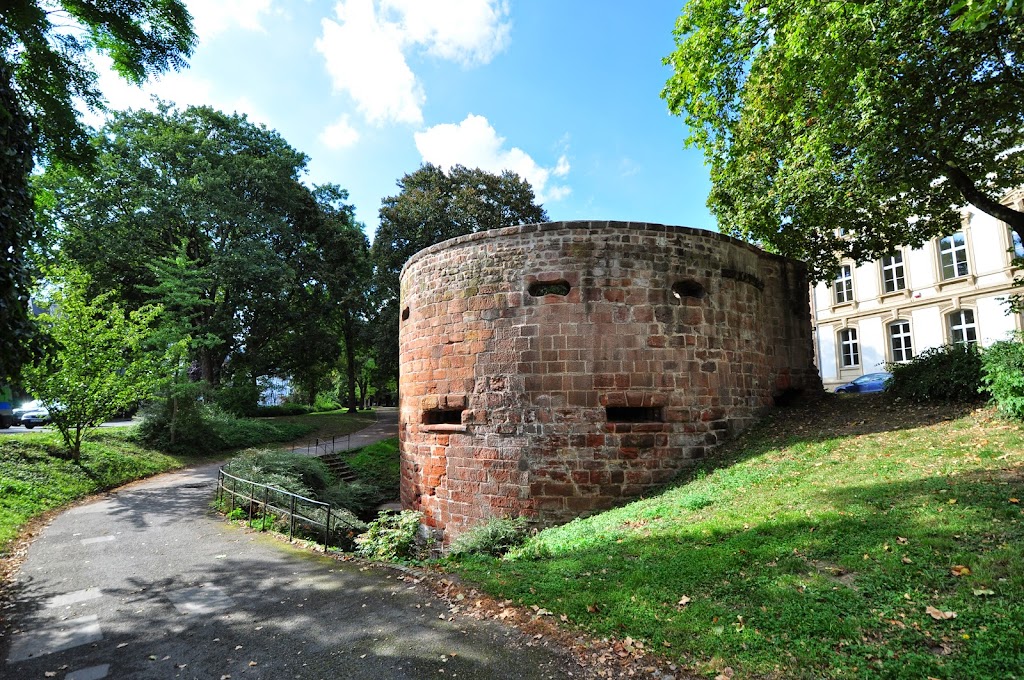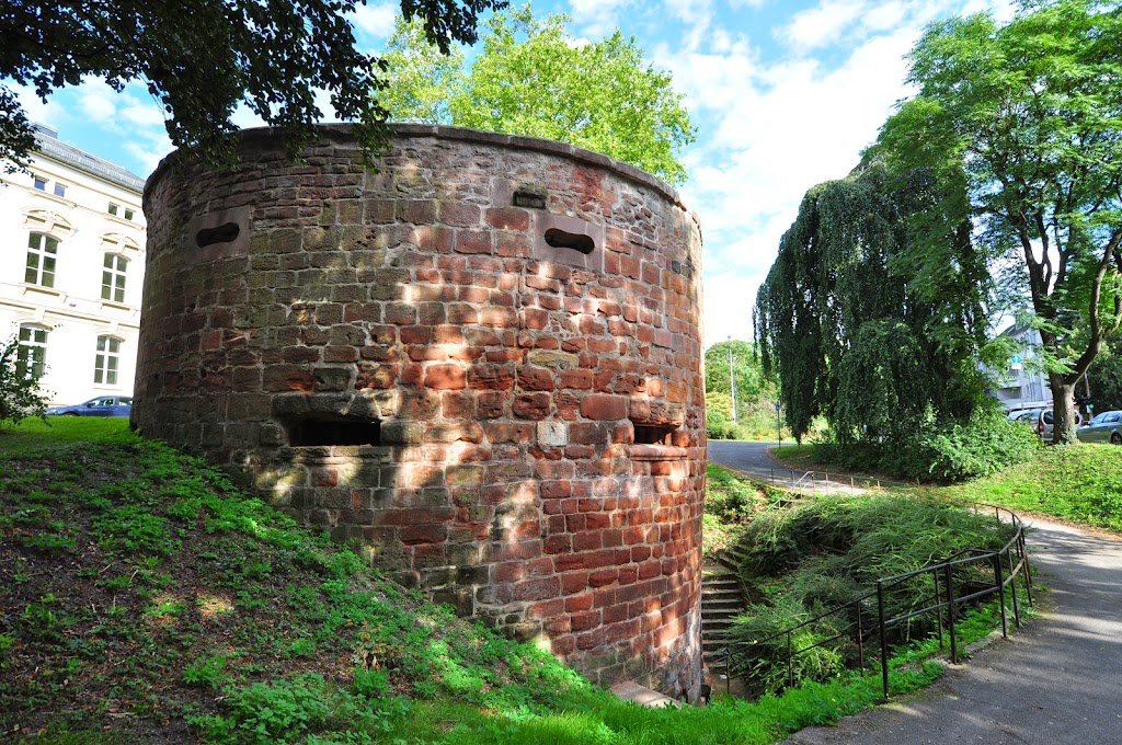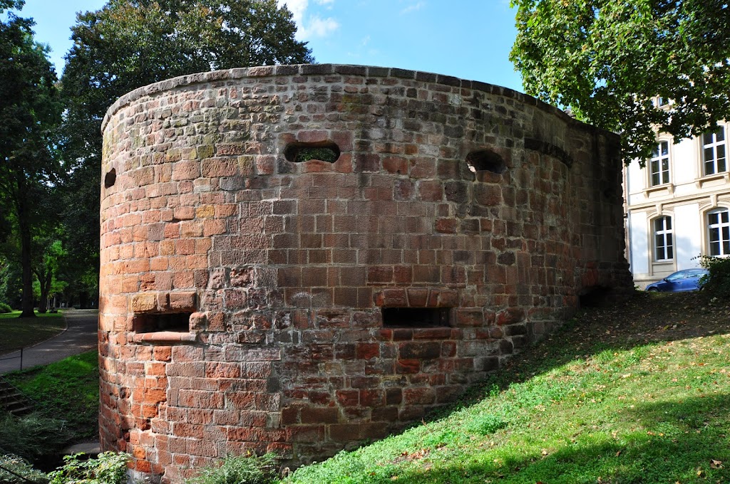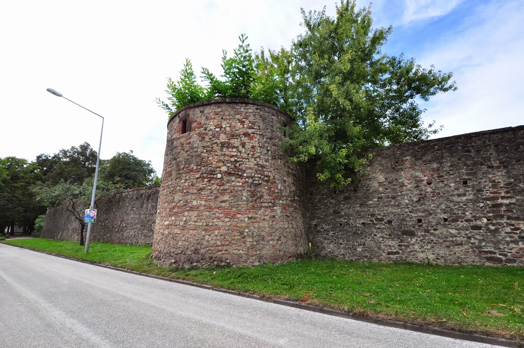 Długi odcinek murów wraz z basztą przy Weimarer Allee.