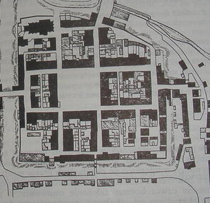 Założenie zbliżone kształtem do kwadratu posiadało bardzo regularny układ szachownicowy.