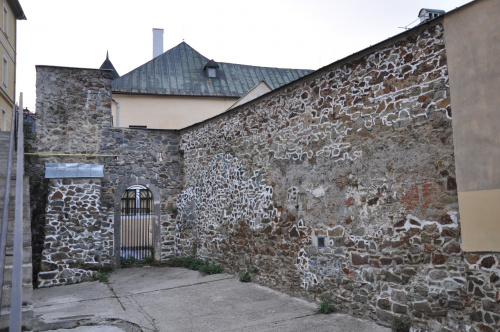 pozostałości murów miejskich w Bańskiej Szczawnicy, fragment muru z basztą oraz przebudowana jedna z bram i baszta