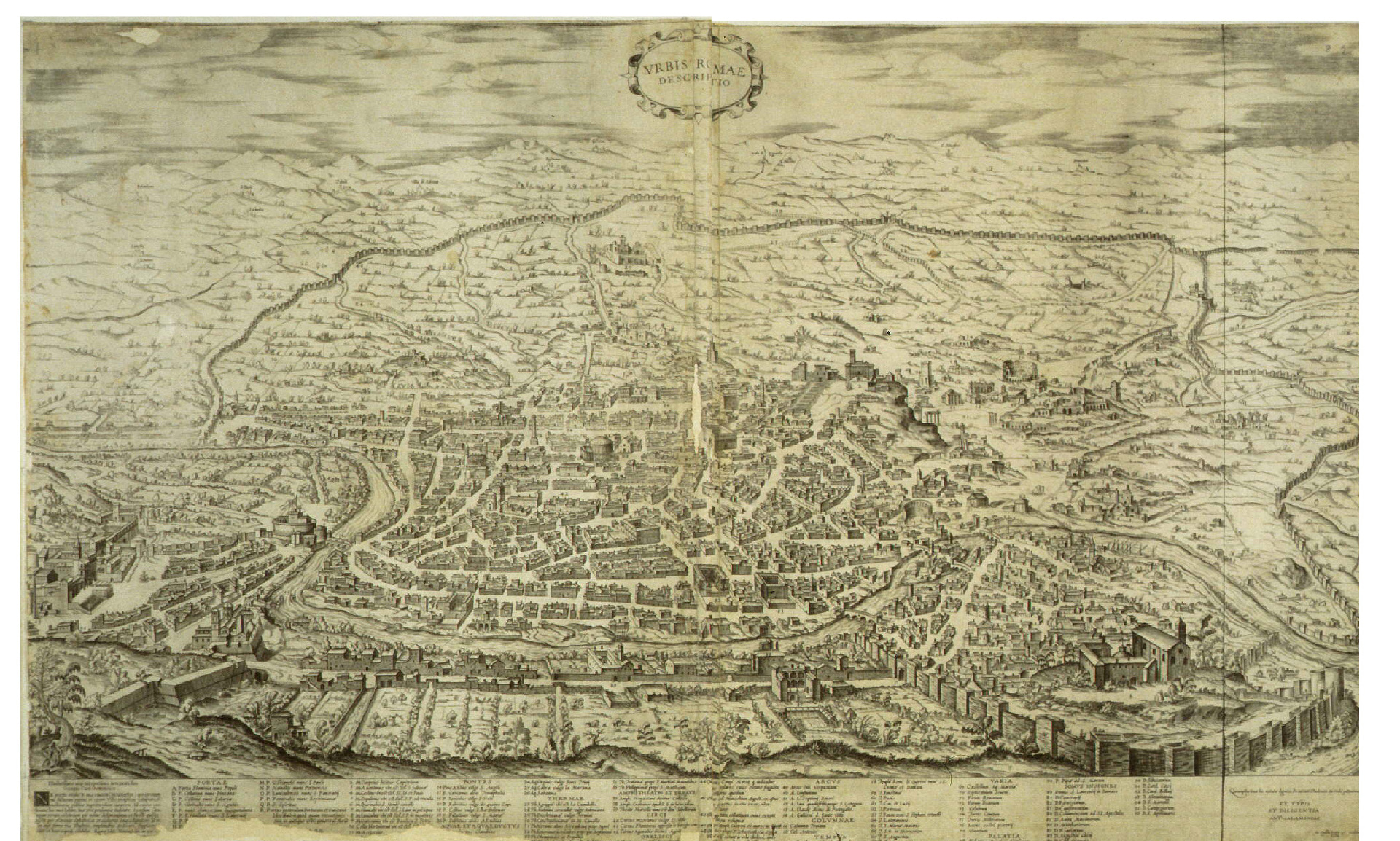 mury na mapie Rzymu z 1555 roku