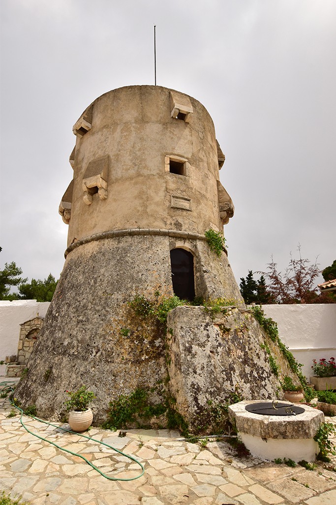 Bizantyjski klasztor z wieżą obronną z XVI w., obok plaży Navagio