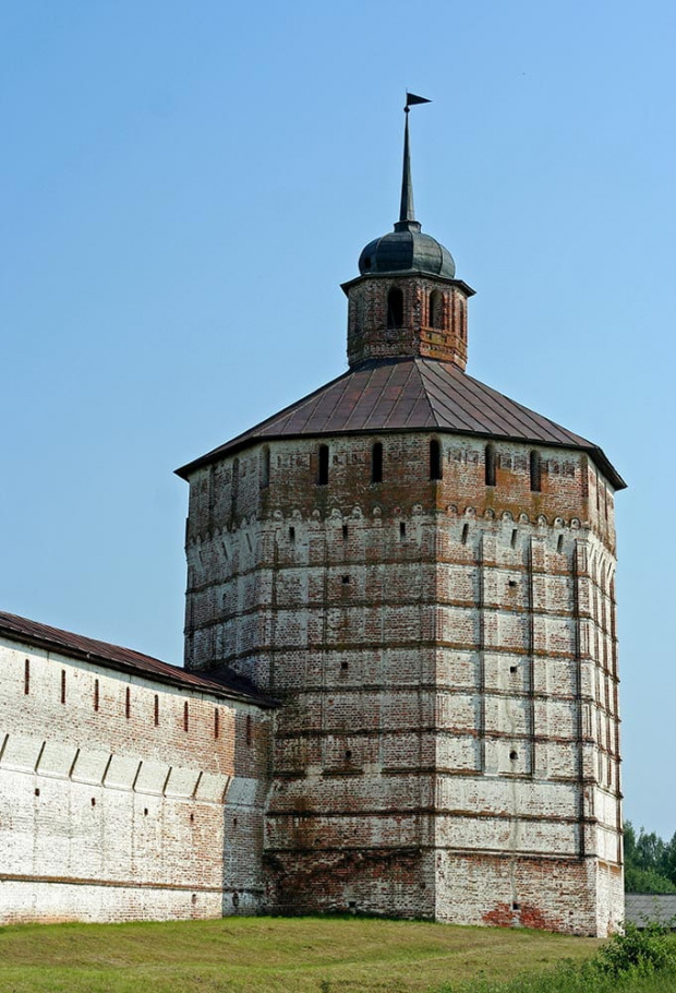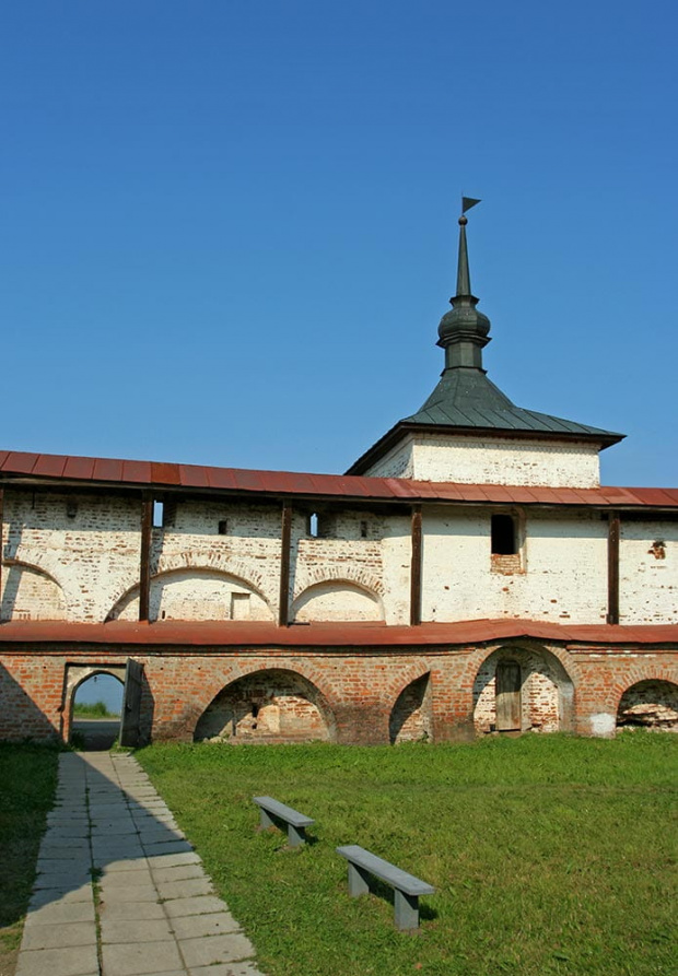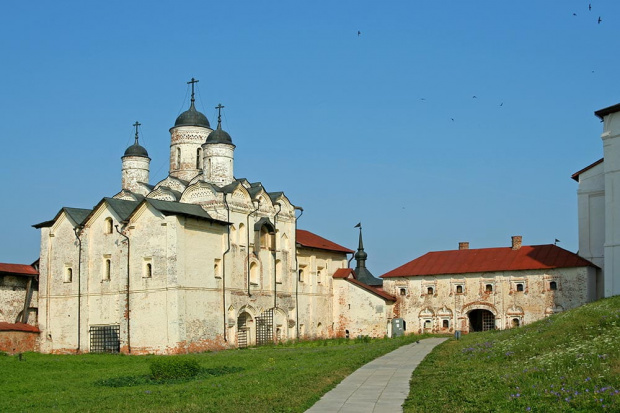 Monastyr został ufundowany w 1397 roku przez Kiryła Biełozierskiego. Murowane obwarowania wybudowano w 1600 roku. W obrębie murów znajdowało się osiem baszt. Wewnątrz monastyru było 9 cerkwi i dzwonnica. W latach 1612-13 był kilkakrotnie napadany przez wojska polskie i litewskie.