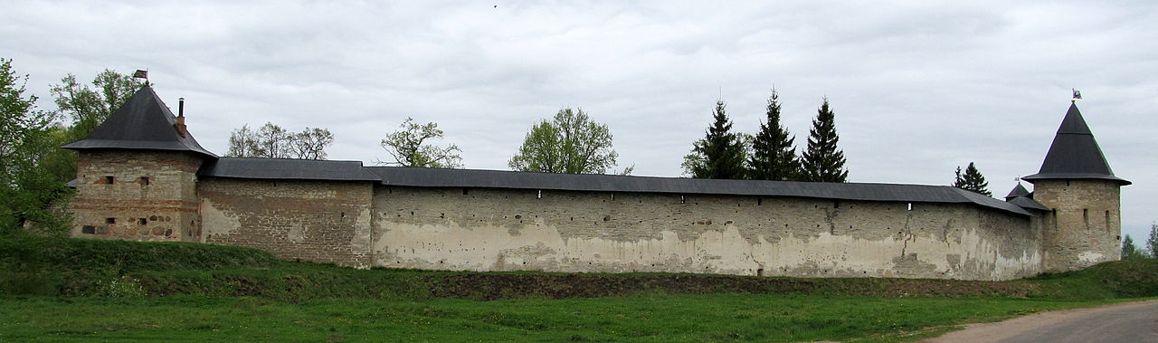 Z racji przygranicznego położenia monaster pełnił nie tylko rolę typowo religijną, ale i wojskową, jako twierdza na zachodniej granicy państwa moskiewskiego. Był oblegany przez wojska polskie w czasie wojny polsko-rosyjskiej 1577–1582 i oblężenia Pskowa. Klasztoru broniły 2–3 sotnie strzelców. Monaster z powodzeniem bronił się przez pięć miesięcy. Według tradycji cerkiewnej monaster został ocalony za wstawiennictwem Matki Bożej, co upamiętniały w kolejnych stuleciach uroczyste procesje z jej ikoną w 7 niedzielę po Wielkanocy. W XVII w. klasztor był jeszcze wielokrotnie atakowany przez wojska szwedzkie lub polsko-litewskie. W 1701 na polecenie cara Piotra I monaster został otoczony wałem ziemnym i fosą, jak również zabezpieczony poprzez wzniesienie pięciu bastionów. Dzięki temu w 1703 oddział Iwana Nazimowa z powodzeniem odparł ataki szwedzkie na monaster. Była to ostatnia bitwa stoczona na jego terenie. Po podpisaniu pokoju w Nystad i przesunięciu granicy rosyjskiej na wschód obiekt stracił dotychczasowe znaczenie obronne.