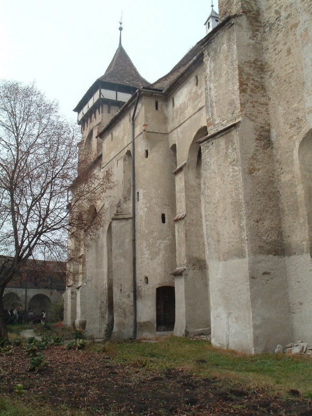 Kościół warowny, typowy dla saskich wsi siedmiogrodzkich, znajduje się w centrum wsi. Pierwotna budowla powstała zapewne w XIV w., obecną wzniesiono na przełomie XV i XVI stulecia. Sama bryła kościoła ma charakter zdecydowanie obronny. Jest to potężna budowla, w której wyróżnia się szczególnie wysoko nadbudowane ponad poziom nawy prezbiterium, pełniące funkcję baszty, podobnie jak i skromniejsza wieża wznosząca się ponad wejściem. Wieża i prezbiterium połączone są obszernym strychem obronnym ponad nawą z otworami strzelniczymi. Obronności kościoła służą też hurdycje oraz zewnętrzne klatki schodowe umożliwiające szybkie dostanie się na górne poziomy. Oprócz tego kościół otoczony jest pierścieniem murów obronnych z 4 basztami. To wszystko czyni z zespołu kościelnego potężne założenie zamkowe, zgodnie z inskrypcją znajdującą się wewnątrz kościoła, pochodzącą z pieści Lutra: Ein fester Burg ist unser Gott ("Solidną twierdzą jest nasz Bóg").
