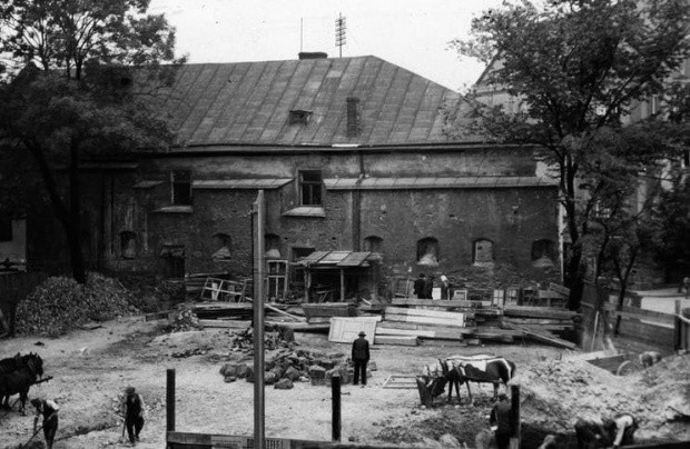 Odsłonięcie murów fortyfikacyjnych przy ulicy Czarnieckiego w okresie międzywojennym