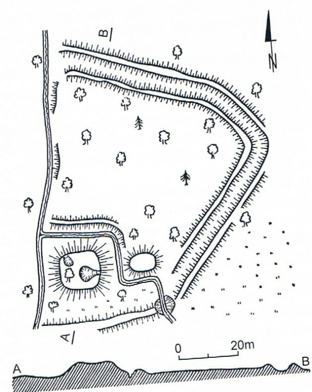 Obiekt położony jest na płaskim i suchym terenie ok 150m na SW od W krańca wsi.