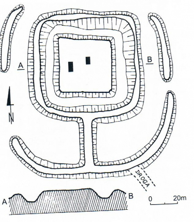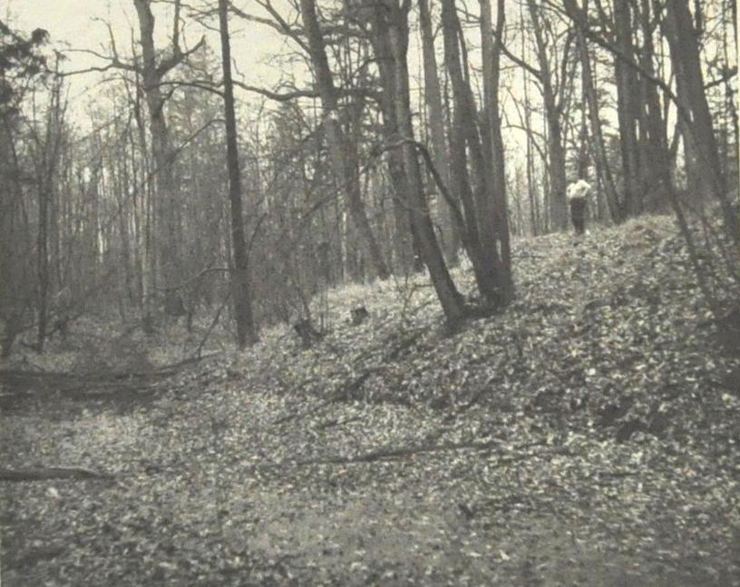 widok fragmentu kopca i fosy wg fotografii z 1972 r. (archiwum WUOZ Wrocław)