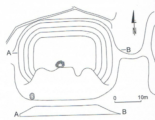 na plateau, pozostałości budynku, który stał na kopcu