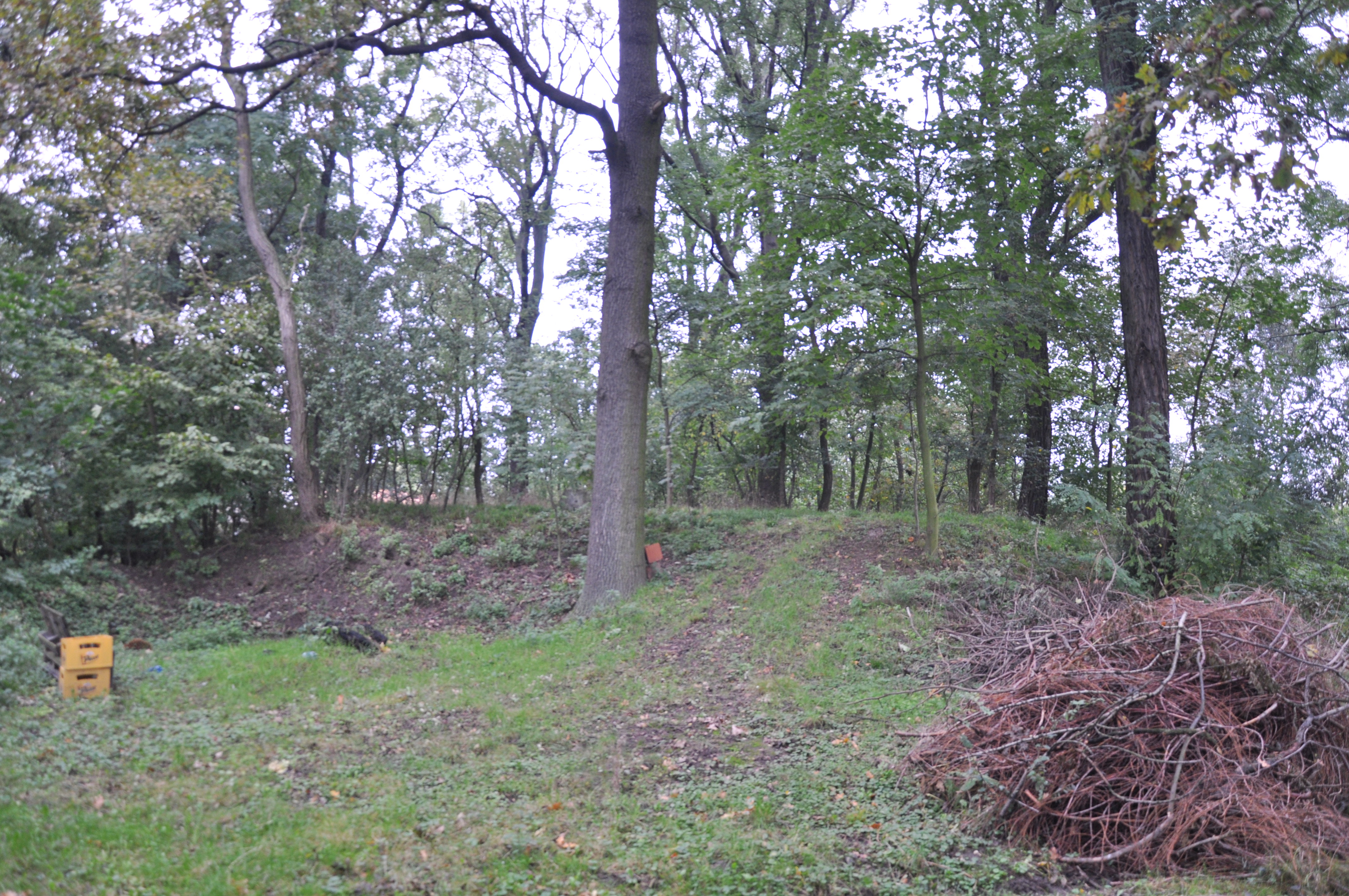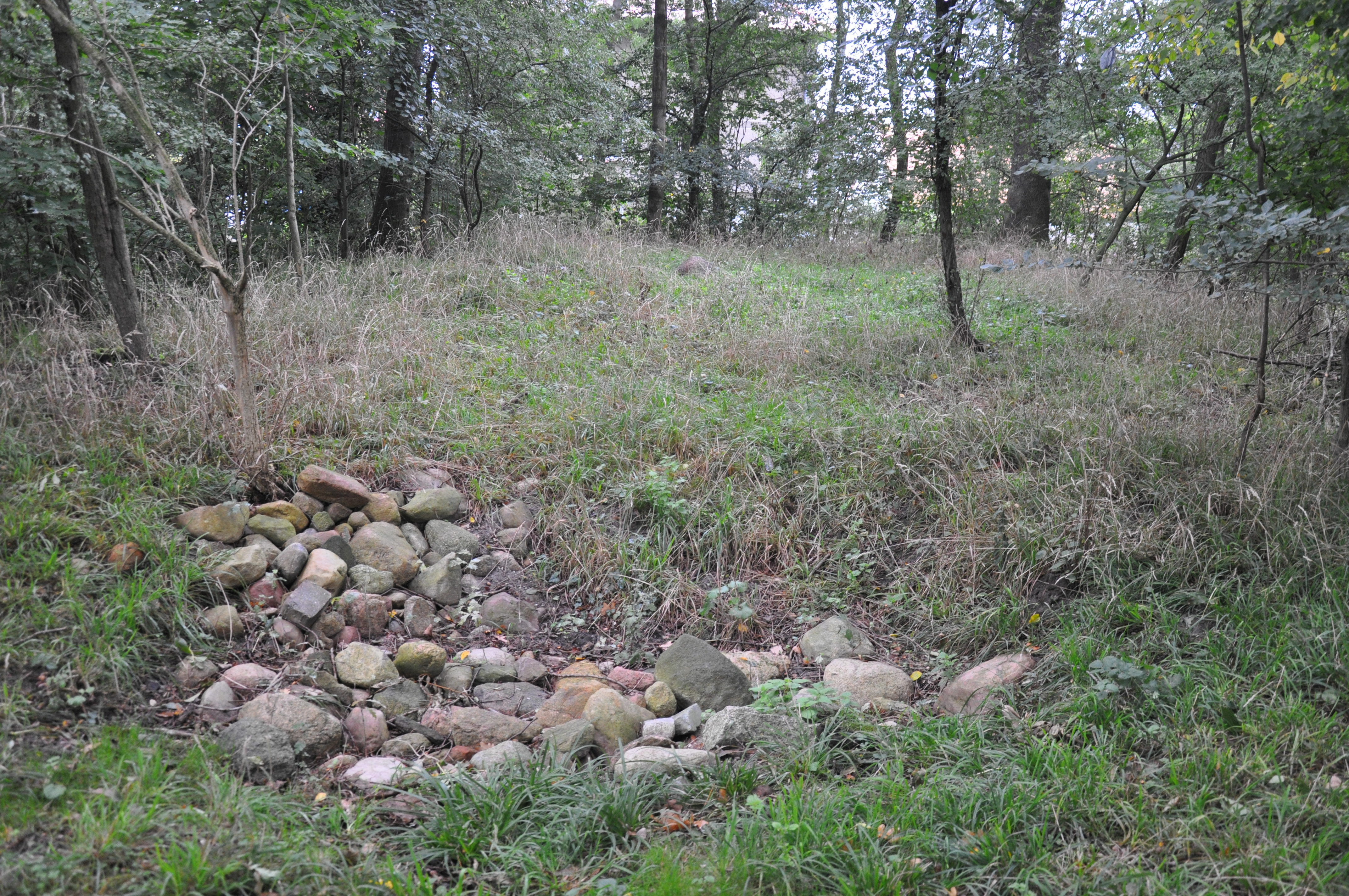 Obiekt położony na płaskim i podmokłym terenie na krawędzi łąk od 250m na N od kościoła.