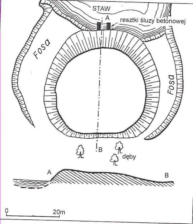 Resztki grodziska średniowiecznego położone są koło przysiółka Kalinówka, obecnie w granicach administracyjnych wsi Polanowo. Obiekt położony jest na skraju dawnego parku dworskiego. W terenie zachował się w postaci owalnego wzniesienia wysokiego do 3m o rozmiarach u podstawy 32x38m otoczonego zachowaną w 2/3 obwodu fosą, łączącą się z niewielkim stawem zasilanym przez strumień. Obecnie na powierzchni kopca występuje w wielu miejscach gruz ceglany przemieszany z zaprawą wapienną i spalenizną. Kopiec był przebadany archeologicznie, po których wiadomo, że była to siedziba mieszkalno-obronna sięgająca swoimi początkami późnego średniowiecza.