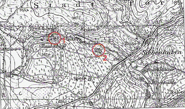 położenie grodziska "Zbójecki Zamek", oznaczony jako 1.
