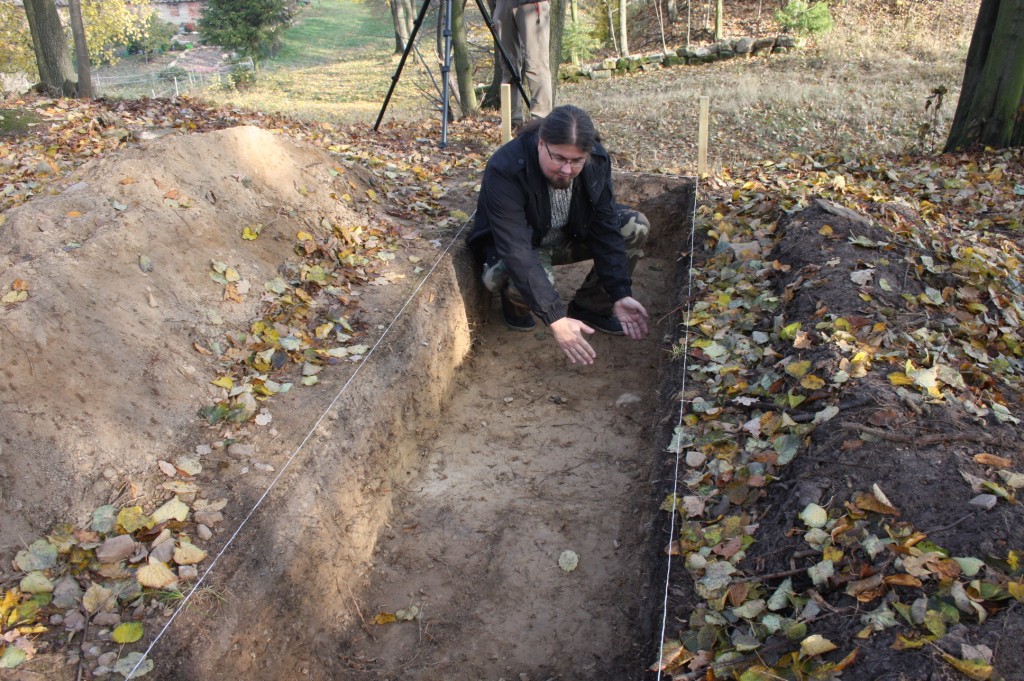 Coraz bardziej zaintrygowani gospodarze Rancza asystowali Łesiukowi, gdy załatwiwszy wszelkie potrzebne pozwolenia, zaczął kontrolnie warstwa po warstwie badać niewielki pas gruntu. Z wykopu wyciągnęli min. fragmenty potłuczonych naczyń średniowiecznych.