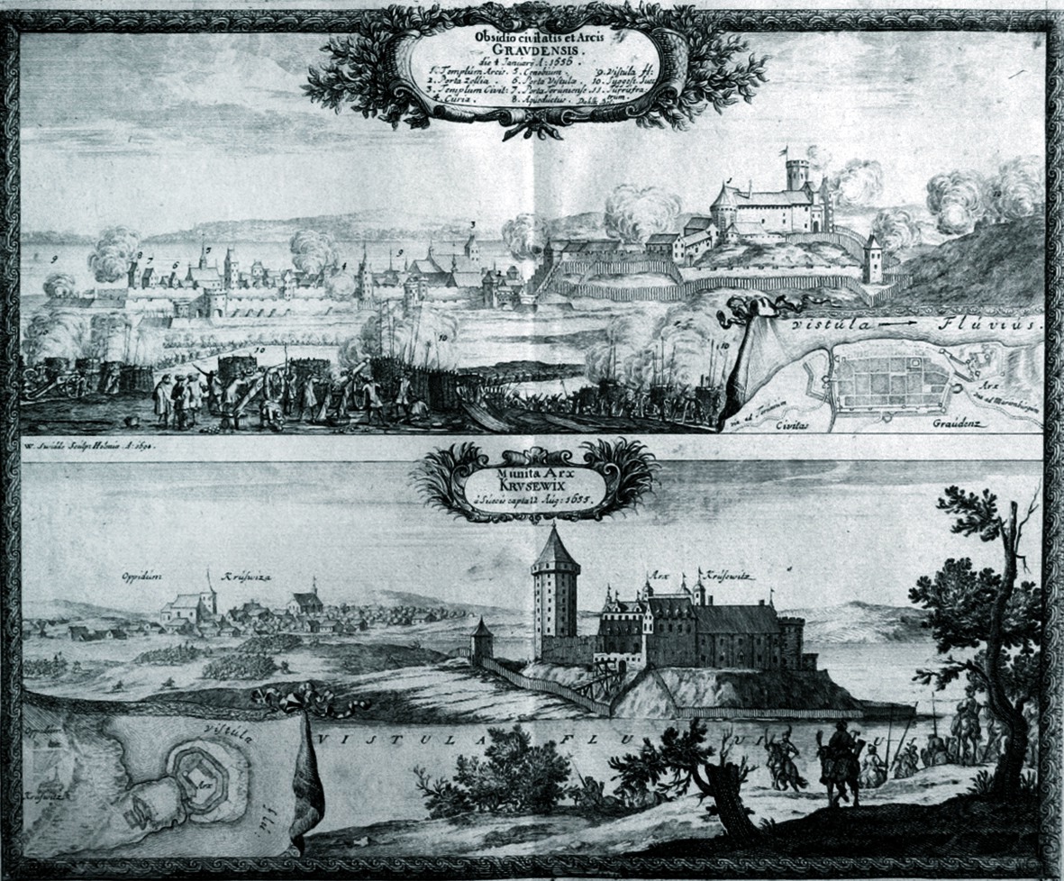 Na tej karcie są jednocześnie Grudziądz i Kruszwica. Gdy spojrzymy na plan Grudziądza, to poza murami jest zaznaczone civitas. Civitas nie jest ujęte na panoramie.