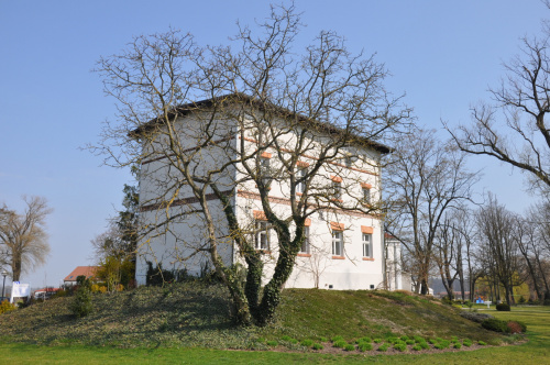 We wsi znajduje się pozostałość po dworze obronnym w miejscowym zespole parkowym. Ze wzniesionym w XIX wieku neoklasycystycznym budynkiem dworskim sąsiadują tutaj pozostałości starszego dworu obronnego, mające formę kopca, na którym stoi budynek mieszkalny adaptowany ze spichlerza zbudowanego w pierwszej połowie XIX wieku. Sklepione kolebkowo piwnice dawnego spichlerza mogą być pozostałością spalonego w 1688 roku dworu obronnego