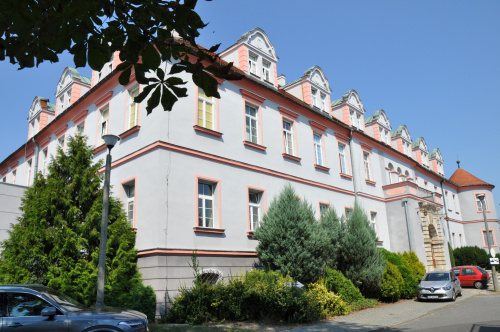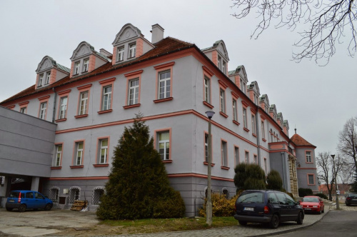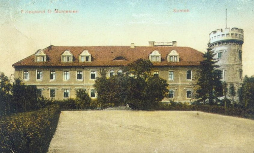 Zespół pałacowy został wzniesiony w 1616 roku z fundacji Pilchnera. Choć nie posiada fortyfikacji, można przepuszczać, że w przeszłości posiadał obronny charakter. Przebudowywano go dwukrotnie: w XVIII i w 2 połowie wieku XIX. Budowla usytuowana jest na północno zachodnim skraju miasta, na niewielkim wzgórzu, na rzucie podkowy o trzech skrzydłach zamykających czworoboczny dziedziniec wewnętrzny, otwarty od zachodu. Od wschodu układ zamyka dziedziniec zamkowy, z budynkiem bramnym i oficynami. Współcześnie dostosowano je dla potrzeb mieszkaniowych. Po wojnie opustoszały pałac stał się łatwym łupem dla wszelkiego rodzaju szabrowników. W latach 60. XX w. była to już ruina. Przy braku wyposażenia wnętrz, na uwagę zasługują pewne elementy architektoniczne. Przede wszystkim dwa późnorenesansowe portale, wewnętrzny i zewnętrzny. Pałac, do 1945 roku, był siedzibą właścicieli majątku Friedland, rodów: Beroschinsky, Schaff Gotsch, Redern, Denewitz, Mettich, Buchta, Nowagk, Burghauss i Pückler. Po zakończeniu II wojny światowej mieściła się w nim siedziba polskiej grupy administracyjnej. Obecnie pałac wraz z kompleksem współczesnych budynków szpitalnych mieści Opolskie Centrum Rehabilitacji.