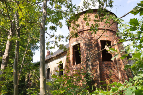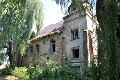 Niszczeje, potwornie pozarastany, pokrzywy do pasa