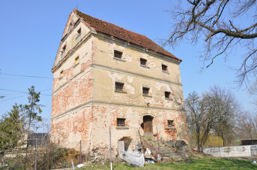 Według informacji archiwalnych obiekt miał formę kopca założonego na planie owalu, a na jego majdanie stała wieża mieszkalna o prostokątnym zarysie. Na mapie Urmesstischblatt z 1828 roku widoczna jest murowana budowla. Obecnie słabo czytelne w terenie owalne wyniesienie w centrum, którego stoi otynkowany trzykondygnacyjny budynek wieżowy z wysokim dachem, założony na planie zbliżonym do kwadratu o długości boku ok 10,5m. W okresie nowożytnym obiekt przebudowano na spichlerz.