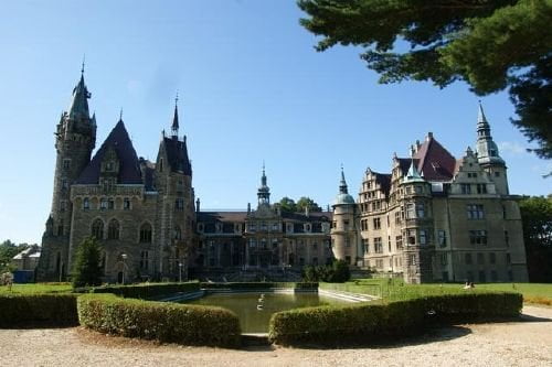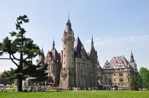 Zamek w Mosznej (ok 28 km od Opola) to jeden z najpiękniejszych zabytków województwa opolskiego. Ten XIX wieczny zamek przypomina bajkowy pałac disneyowski. Ciekawostką jest 99 wież i wieżyczek, które miały odzwierciedlać majątek właściciela hrabiego Franza Huberta von Thiele-Wincklera - ponoć tyle miał posiadłosci na rozsianych po całym świecie. W jednej z wież od ok 20 lat znajduje się szkielet.