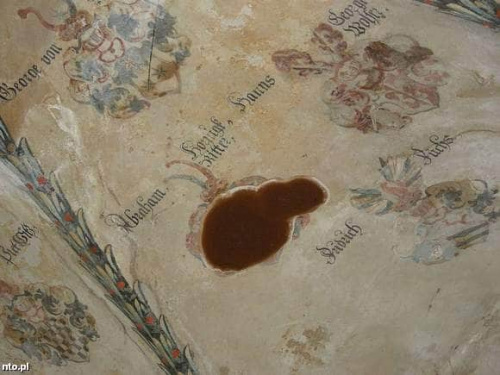 Grzyby przejęły panowanie nad pałacem w Siestrzechowicach koło Nysy. Dorodne kapelusze wychodzą z podłogi na pierwszym piętrze, w sali gdzie hrabiowie podejmowali gości. W pałacowej kaplicy mają do strawienia 79 unikalnych herbów na suficie i ścianach, nie licząc bajecznie kolorowych ornamentów polichromii. Nieznany malarz pracował nad nimi 15 lat. Kiedy skończył, nad wejściem do kaplicy wypisał na tynku datę: 1609 rok. Jego dzieło jest unikatowym dziś zbiorem herbów urzędników księstwa nyskiego z przełomu XVI i XVII wieku, z podaniem ich nazwisk i zajmowanych funkcji. Polichromia moknie od góry. Z deszczowe dni w dawnej kaplicy na parterze kapie za kołnierz z sufitu. Woda przecieka wyżej przez zgnity strop poddasza. Bez przeszkód sączy się przez deski, jakie ostały się jeszcze na stromym pałacowym dachu. Wysokie ceny miedzianego złomu na początku XXI wieku wykończyły renesansową budowlę.