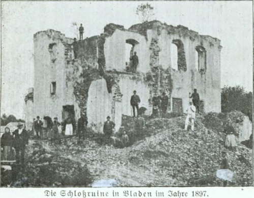 Od 1567 r. we Włodzieninie był zamek zbudowany na zlecenie Bitowskiego (także późniejsza siedziba rodziny Nayhausz). Zamek zbudowany był na planie kwadratu z dziedzińcem w środku. Otoczony był fosą, którą napełniano wodą z pobliskiego rowu młyńskiego. Był też "most pański" gdzie pobierano cło mostowe (pieszy płacił 1 halerz, pusty wóz - 1 fenig, pełny wóz - 2 fenigi). Po obu stronach mostu stały dwie figury: św. Jana Nepomucena i św. Floriana, przeniesione później do ogrodu właściciela majątku. Jak donoszą źródła pod koniec XIX w. zamek się "zapadł", a ruinę kupił w 1897 r. Robert Janotta, który jej część zagospodarował budując tam piętrowy dom. Po 1945 roku w miejscu dawnego zamku (pałacu) wybudowano szkołę.