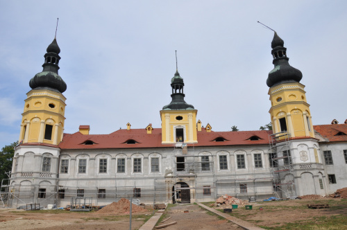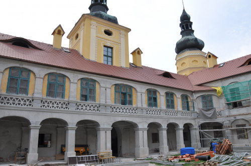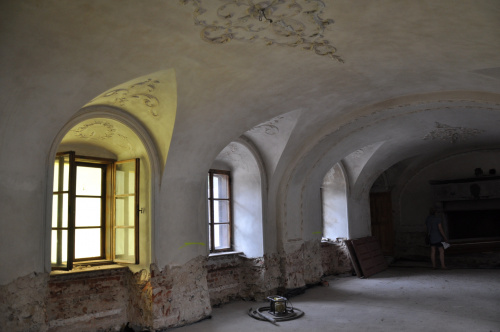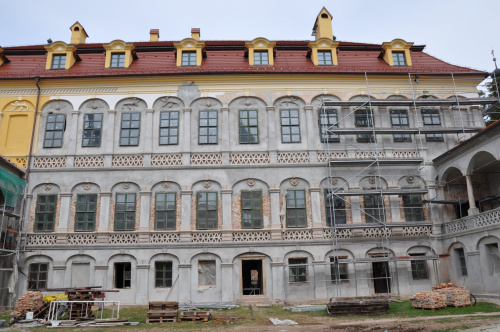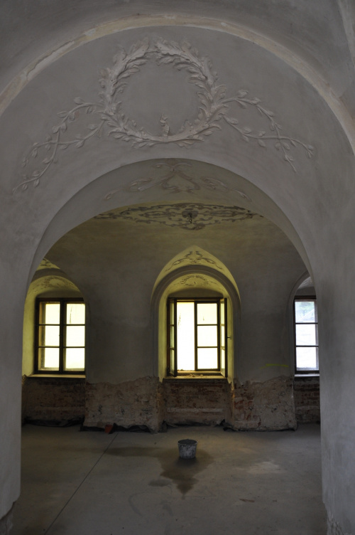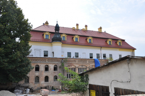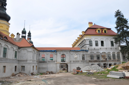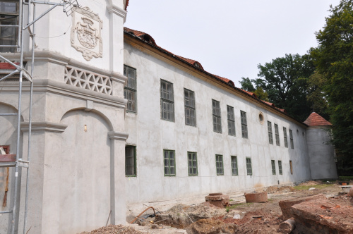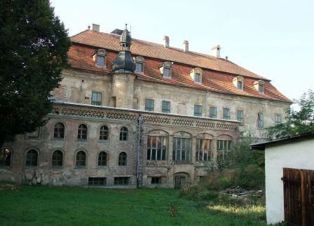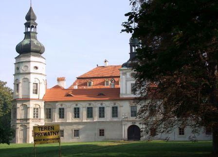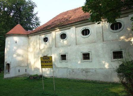 Teren prywatny, o czym informują groźne tablice, ogrodzony. Możliwości legalnego wejścia nie ma. Psa co prawda nie widziałem, ale przystrzyżony trawnik, pootwierane okna i zeznania miejscowych wskazują, że ktoś jednak pałacu pilnuje. Miejscowi mówią, że na pałacu siedzi obecnie komornik.(fot. wrzesień 2011)