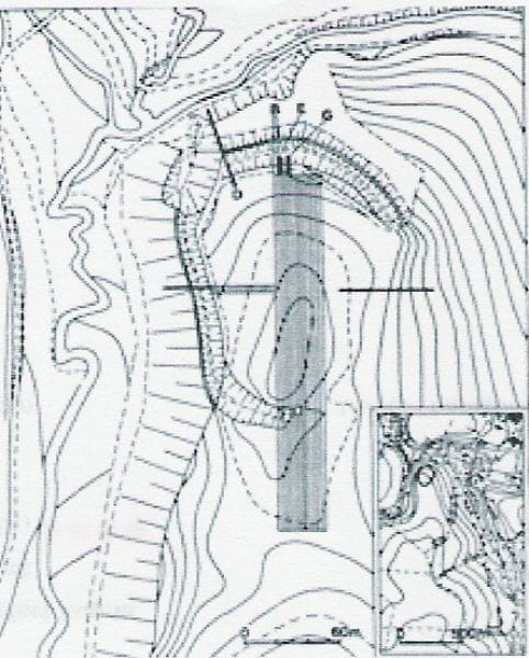 Plan grodziska w Jędrychowicach z rozmieszczeniem wykopów archeologicznych