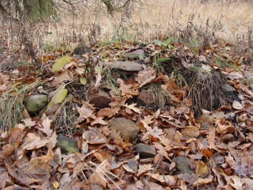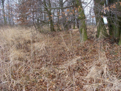 Grodzisko o tej porze jest dobrze widoczne, obok znajduje się ambona myśliwska i z niej najlepiej je widać. Na środku grodziska pełno porozrzucanych kamieni.