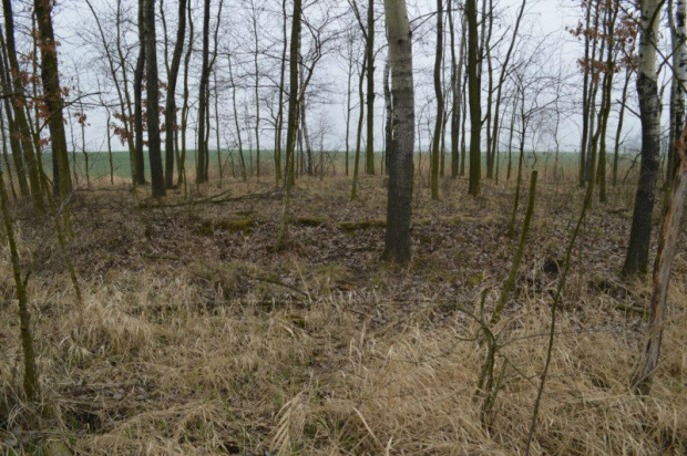Położone na płaskim polu, w niewielkim jego obniżeniu ok. 650m na NE od wsi.