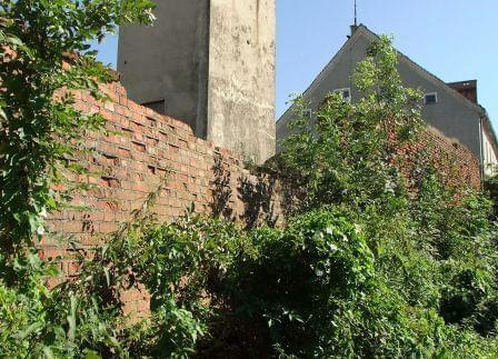 4. Ul. Szkolna. Fragment muru obok baszty nr 3. Oczywiście teren prywatny.