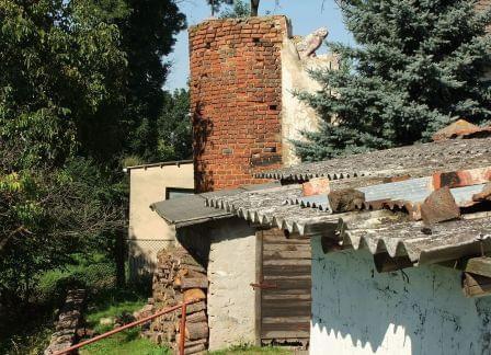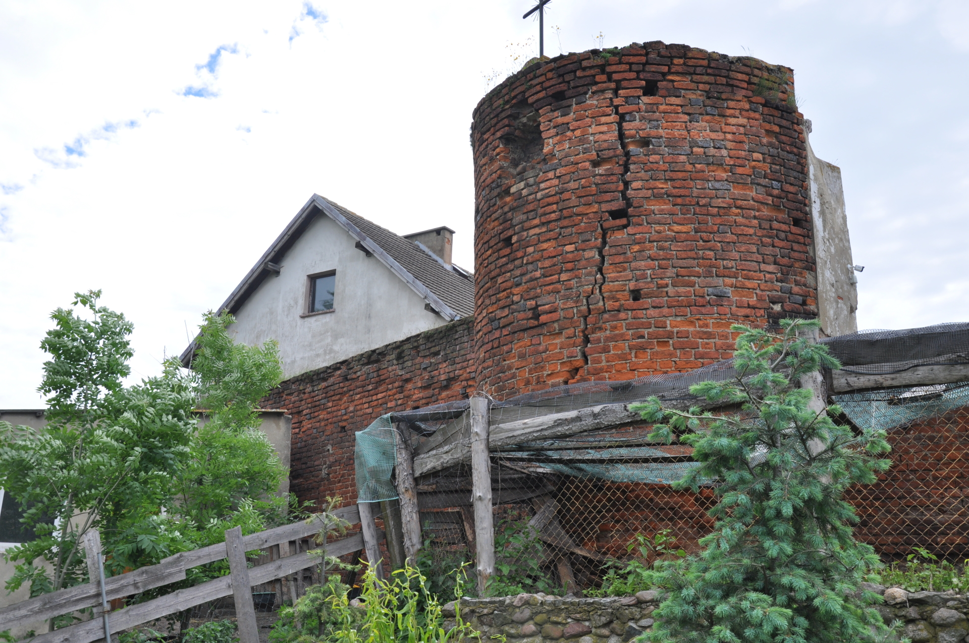 2. Ul. Szkolna. Baszta nr 1. Na terenie prywatnym, widziana przez ogrodzenie.
