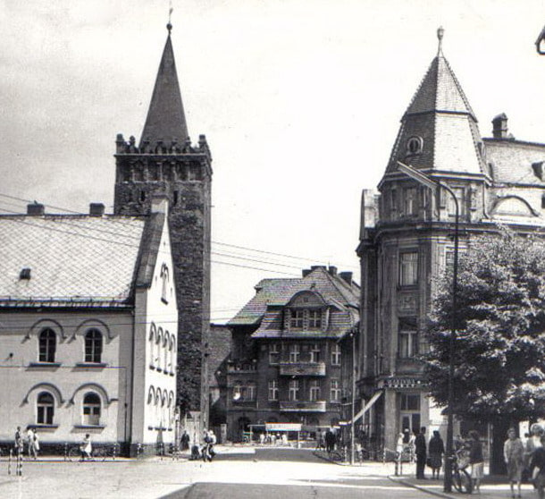 na zdjęciu z lat 60-tych XX wieku wieża Bramy Głównej